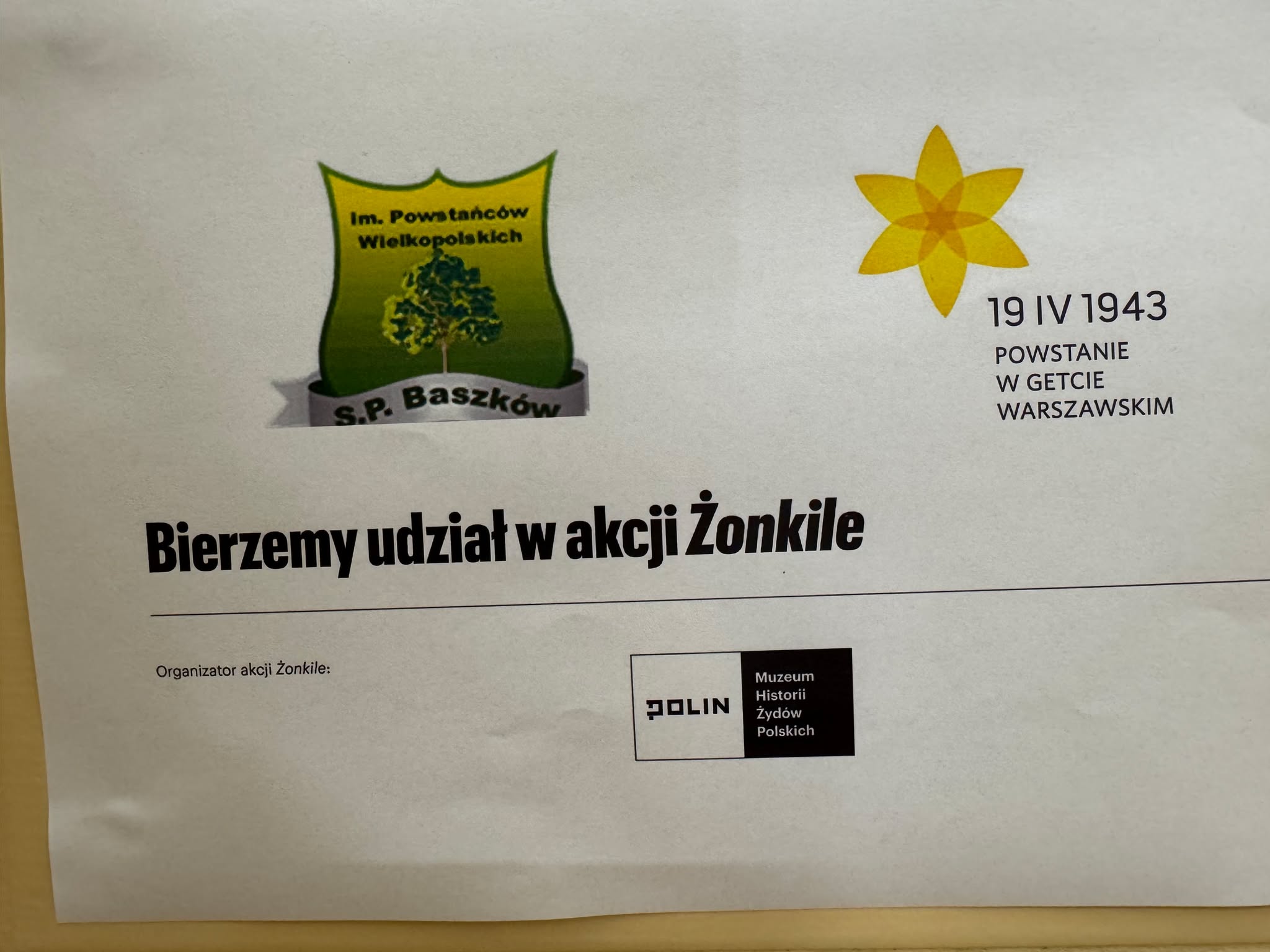 Społeczność naszej szkoły włączyła się w Akcję Żonkile, organizowaną przez Muzeum Historii Żydów Polskich POLIN. Jest to coroczne wydarzenie upamiętniające Powstanie w Getcie Warszawskim z okresu II wojny światowej.