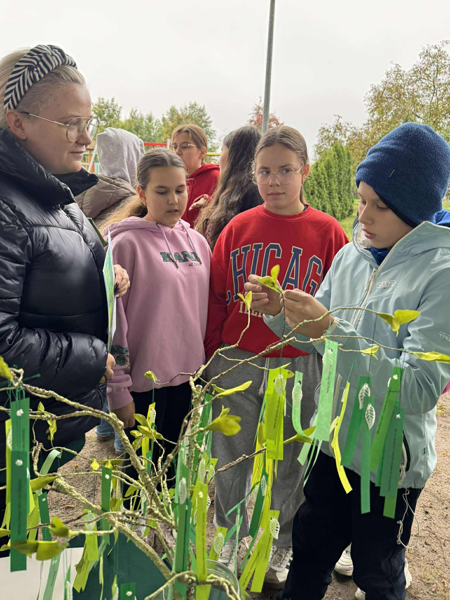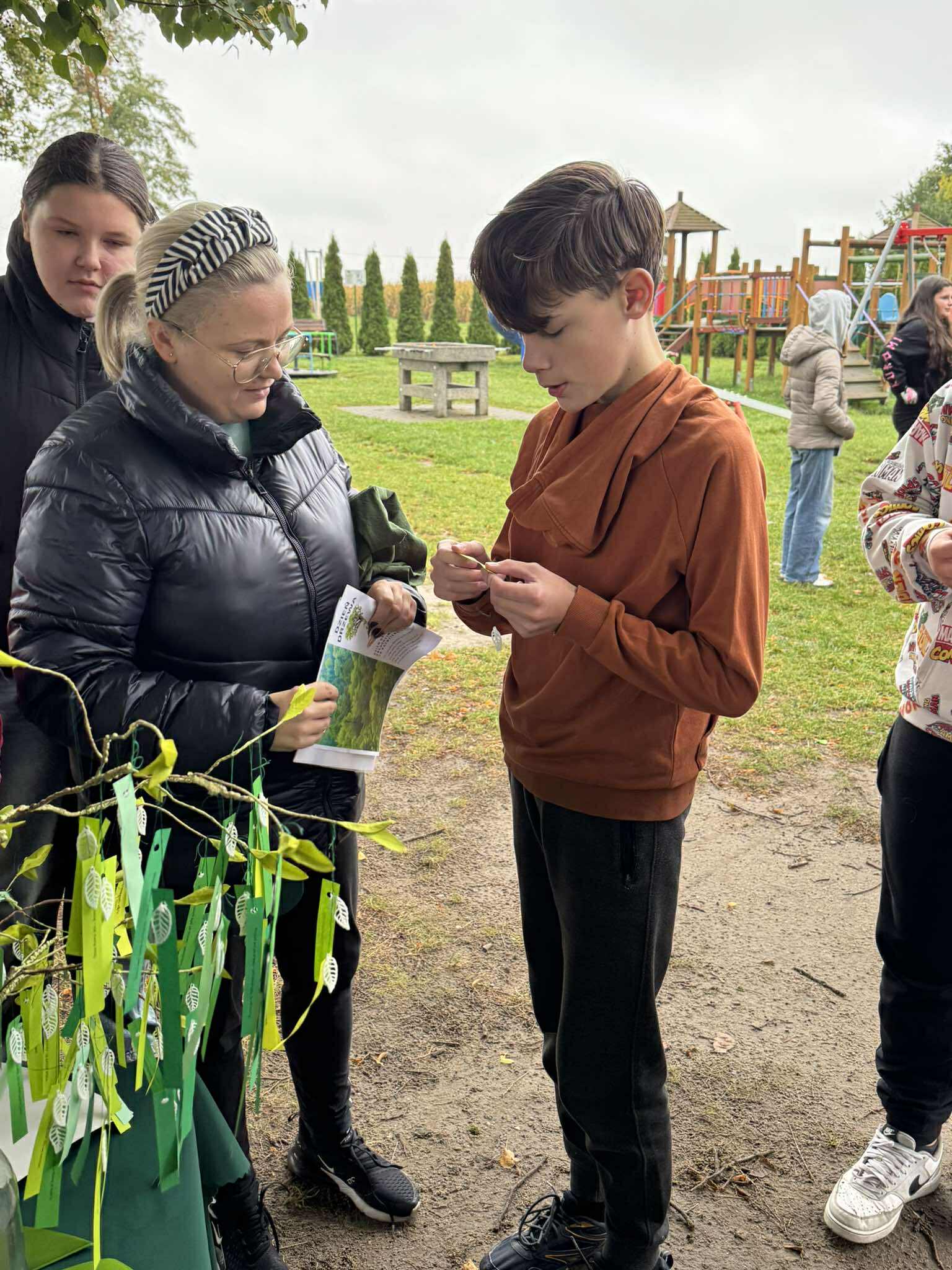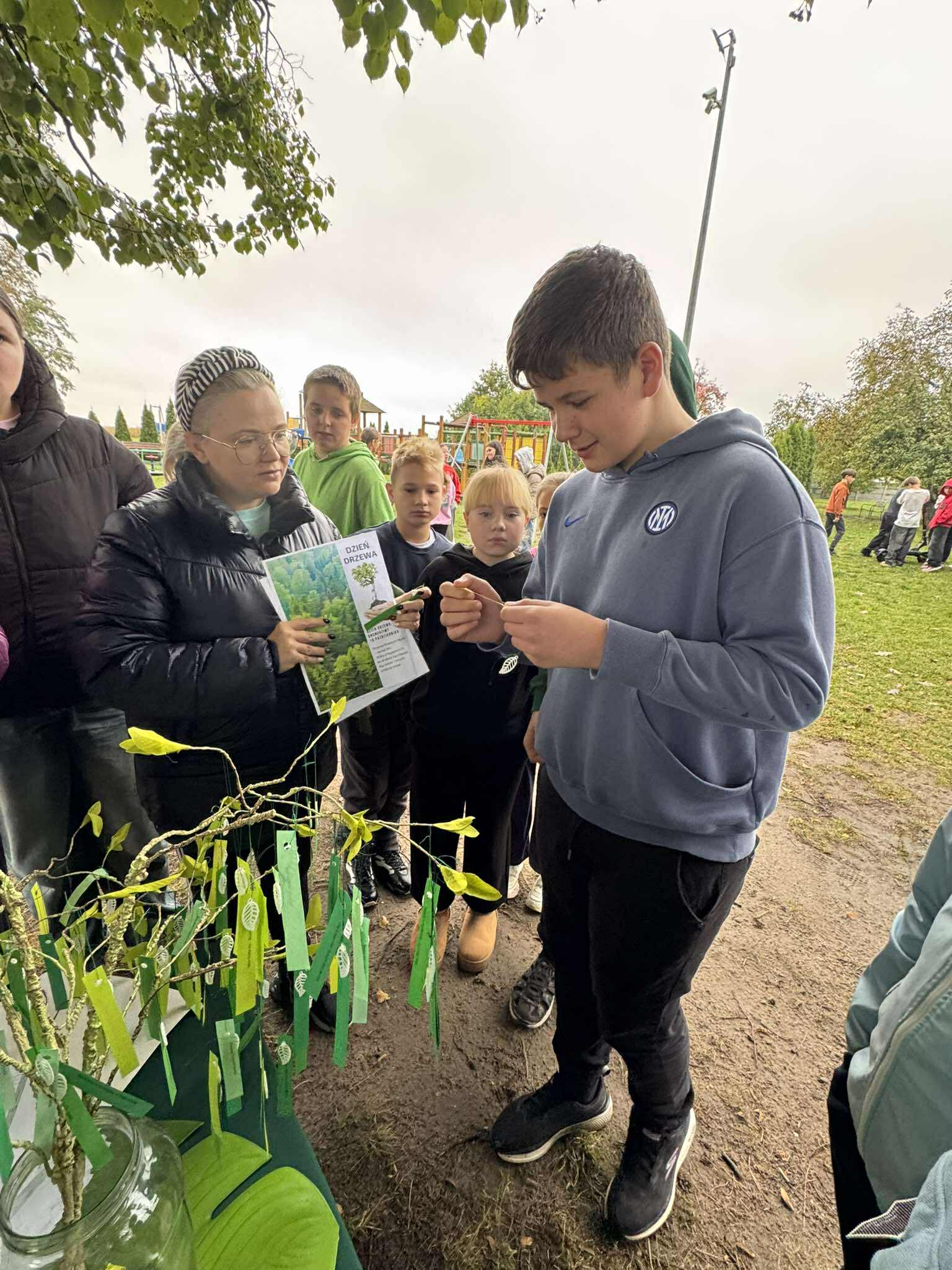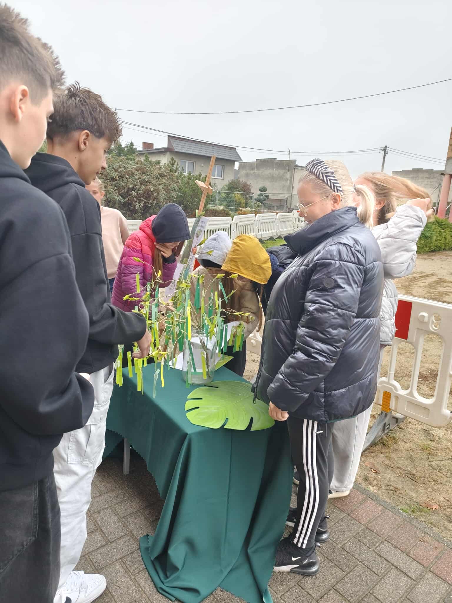 10 października, w Dniu  Drzewa, nasza szkolna ekipa „Zieloni” przygotowała coś wyjątkowego. Przy szkole, w otoczeniu przyrody, pojawiło się Drzewo Dobrych Myśli, pełne liści z pozytywnymi słowami i małymi skarbami życzliwości. Każdy, kto tylko chciał, mógł wziąć dla siebie jeden z listków i zabrać ze sobą iskierkę nadziei – małą sentencję, która ma przypominać, że dobro wraca, a drobne gesty życzliwości zmieniają świat na lepsze.?