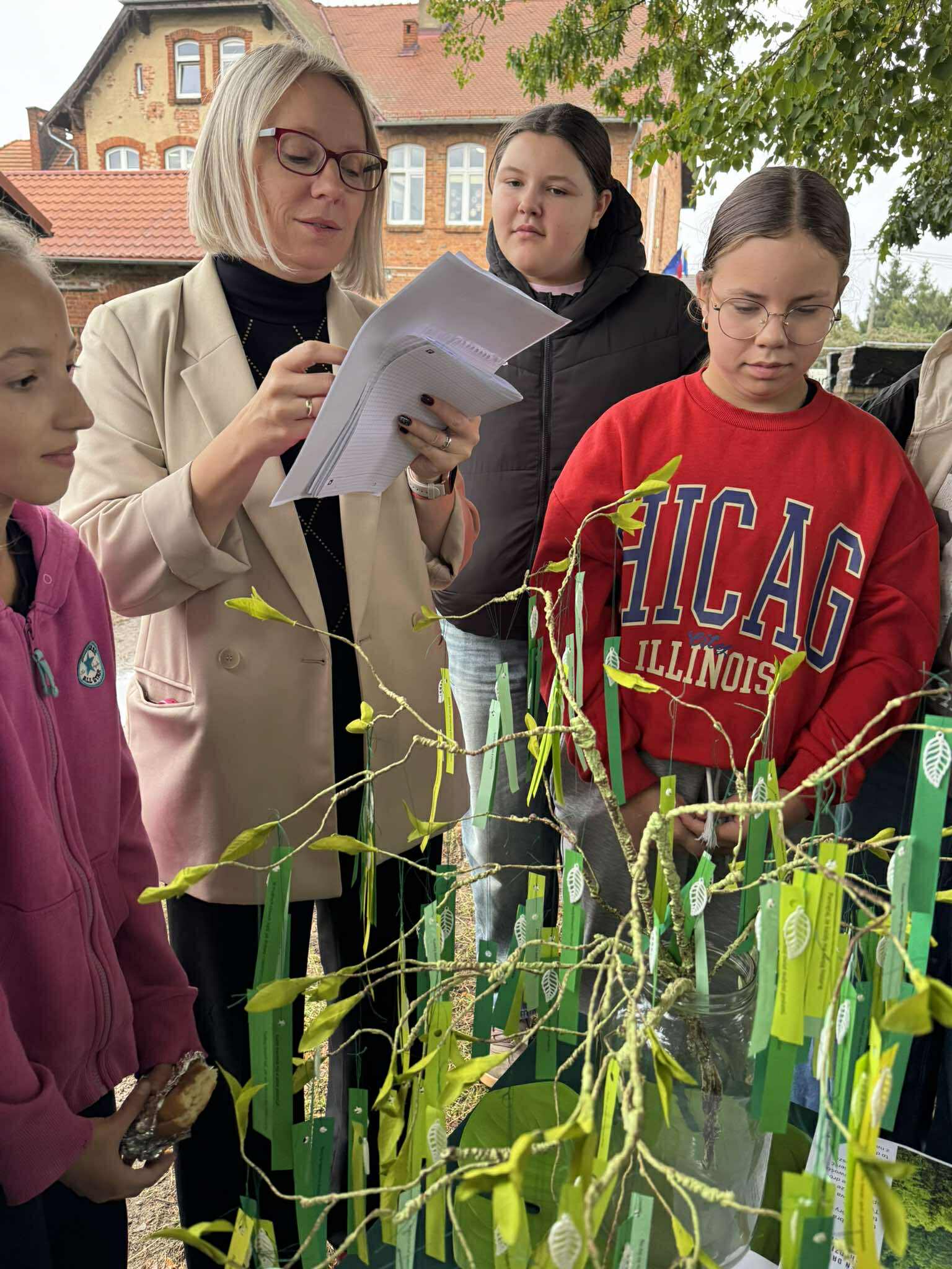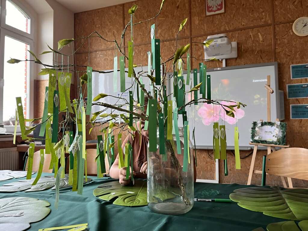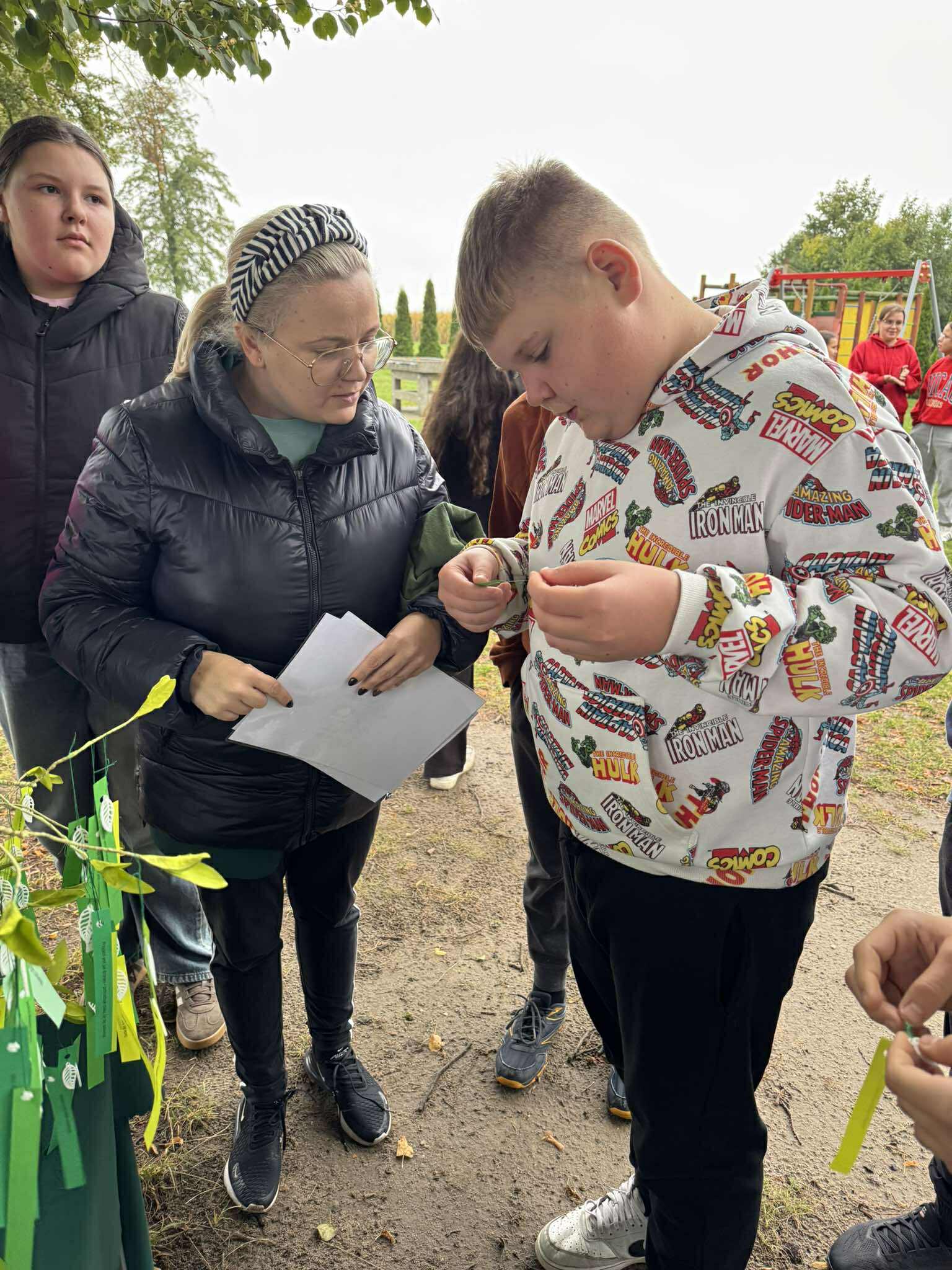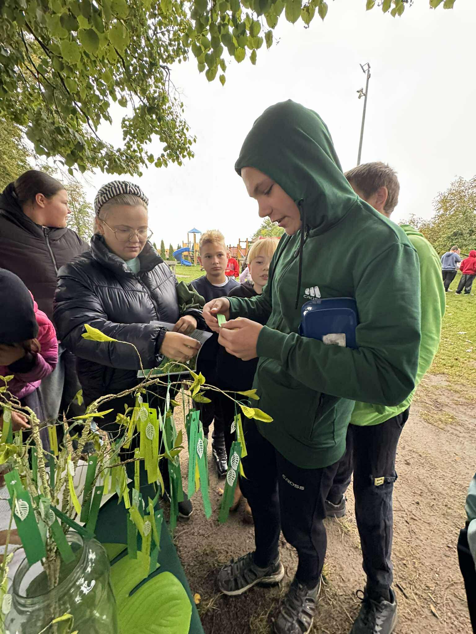 10 października, w Dniu  Drzewa, nasza szkolna ekipa „Zieloni” przygotowała coś wyjątkowego. Przy szkole, w otoczeniu przyrody, pojawiło się Drzewo Dobrych Myśli, pełne liści z pozytywnymi słowami i małymi skarbami życzliwości. Każdy, kto tylko chciał, mógł wziąć dla siebie jeden z listków i zabrać ze sobą iskierkę nadziei – małą sentencję, która ma przypominać, że dobro wraca, a drobne gesty życzliwości zmieniają świat na lepsze.?