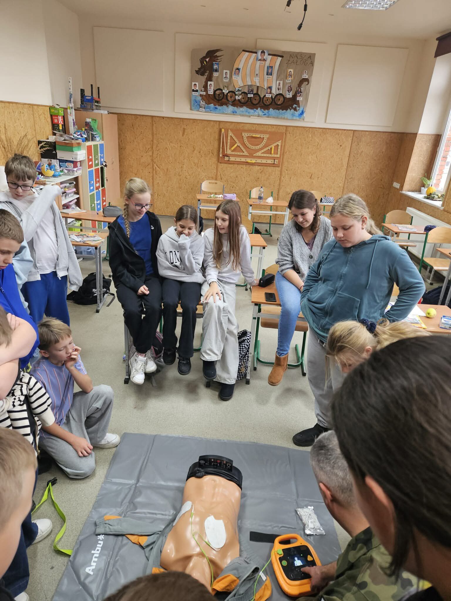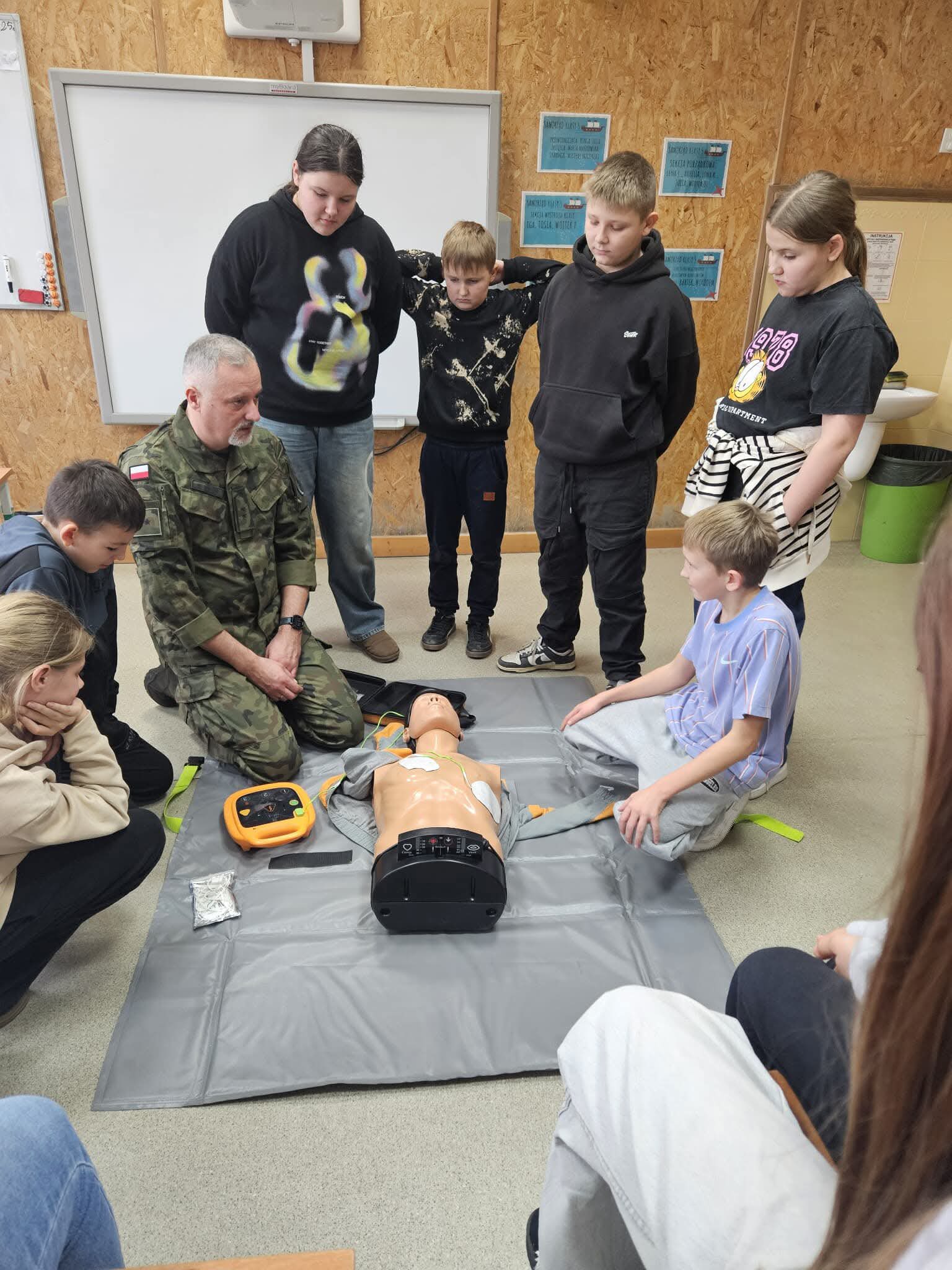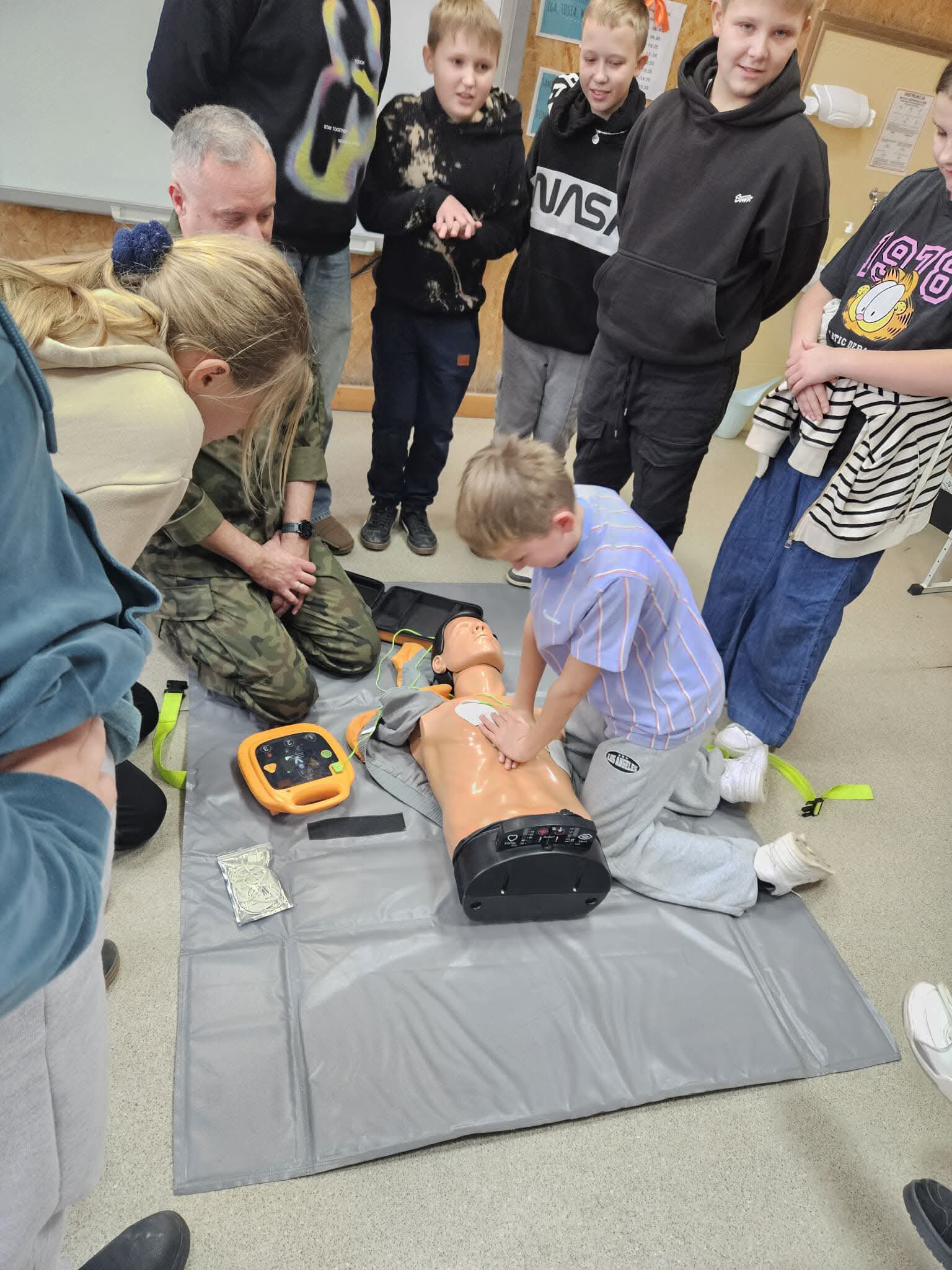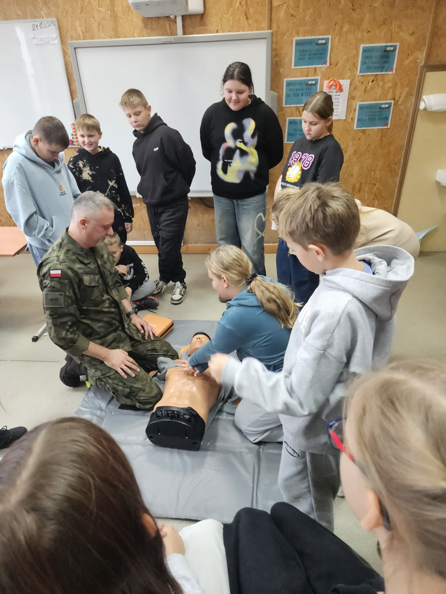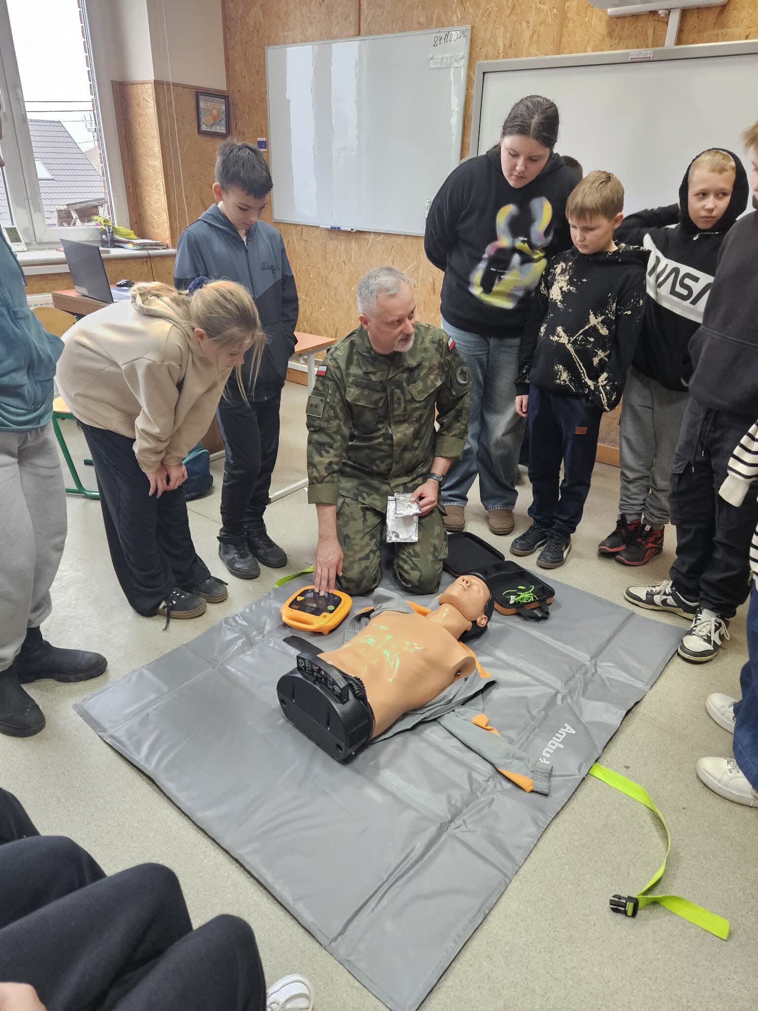 Klasa 5 miała dzisiaj przyjemność uczestniczyć w spotkaniu z żołnierzem 31. Bazy Lotnictwa Taktycznego Poznań- Krzesiny w ramach programu „Edukacja z wojskiem”. Uczniowie zapoznali się m.in. z zasadami alarmowania, sposobami szukania i wzywania pomocy, podstawami ewakuacji i schronienia, technikami udzielania pomocy czy reagowania w sytuacjach trudnych. Zajęcia spotkały się z zainteresowaniem uczniów, którzy chętnie zadawali pytania i poszerzali swoją wiedzą z zakresu wojskowości i szeroko rozumianego pojęcia bezpieczeństwa.