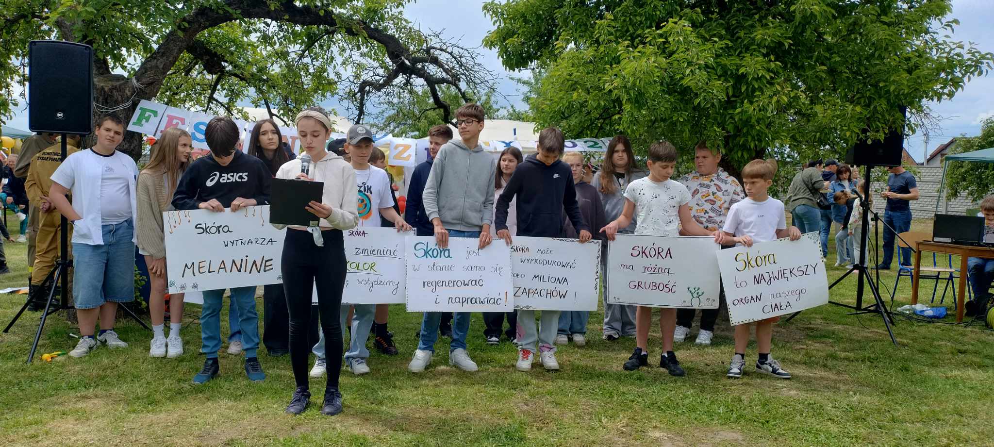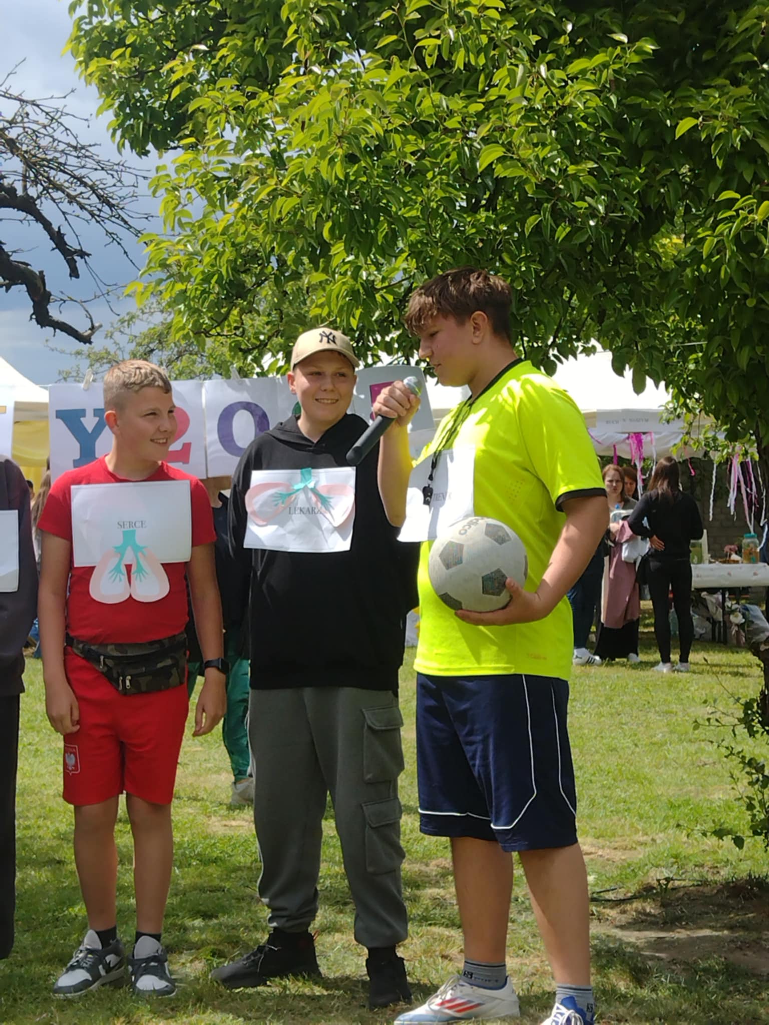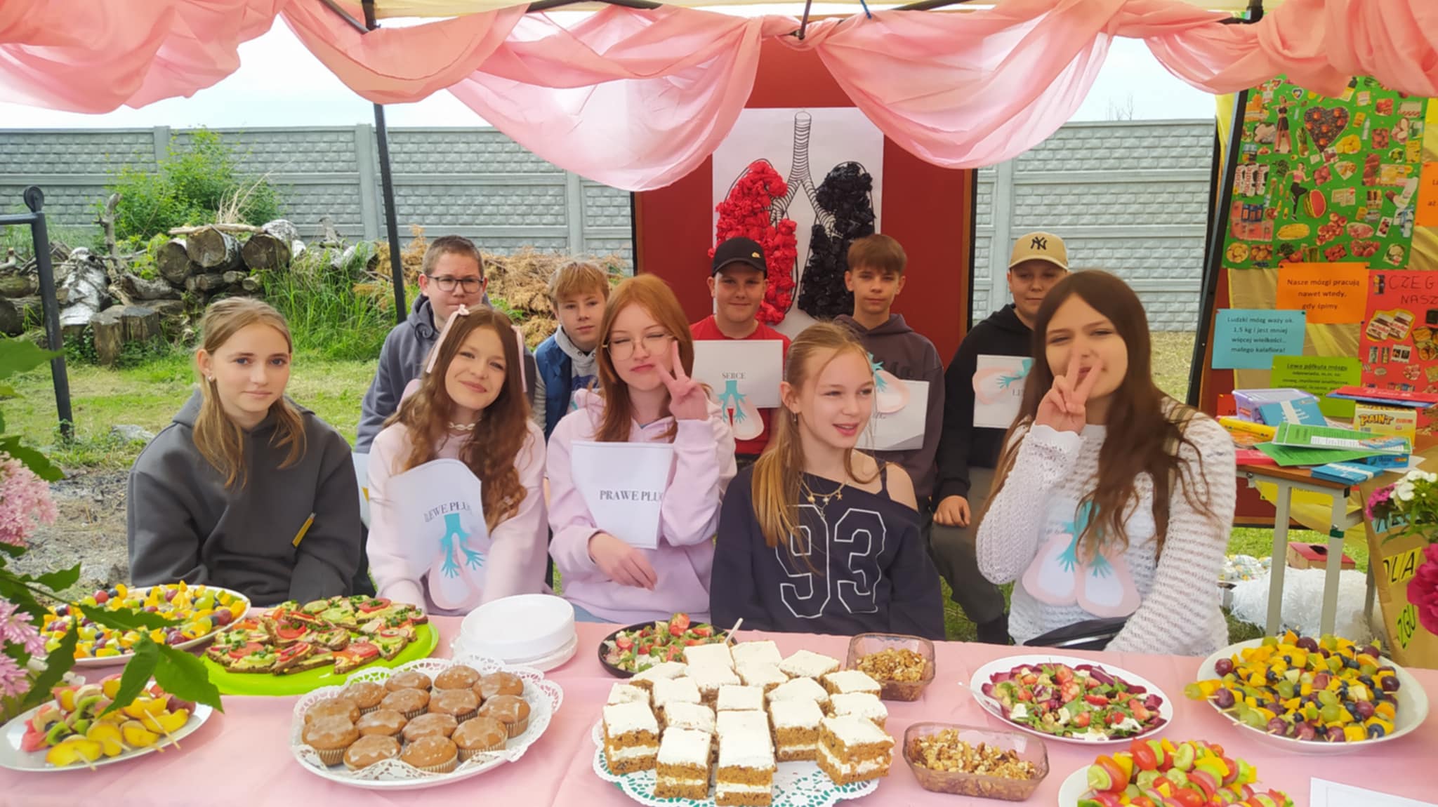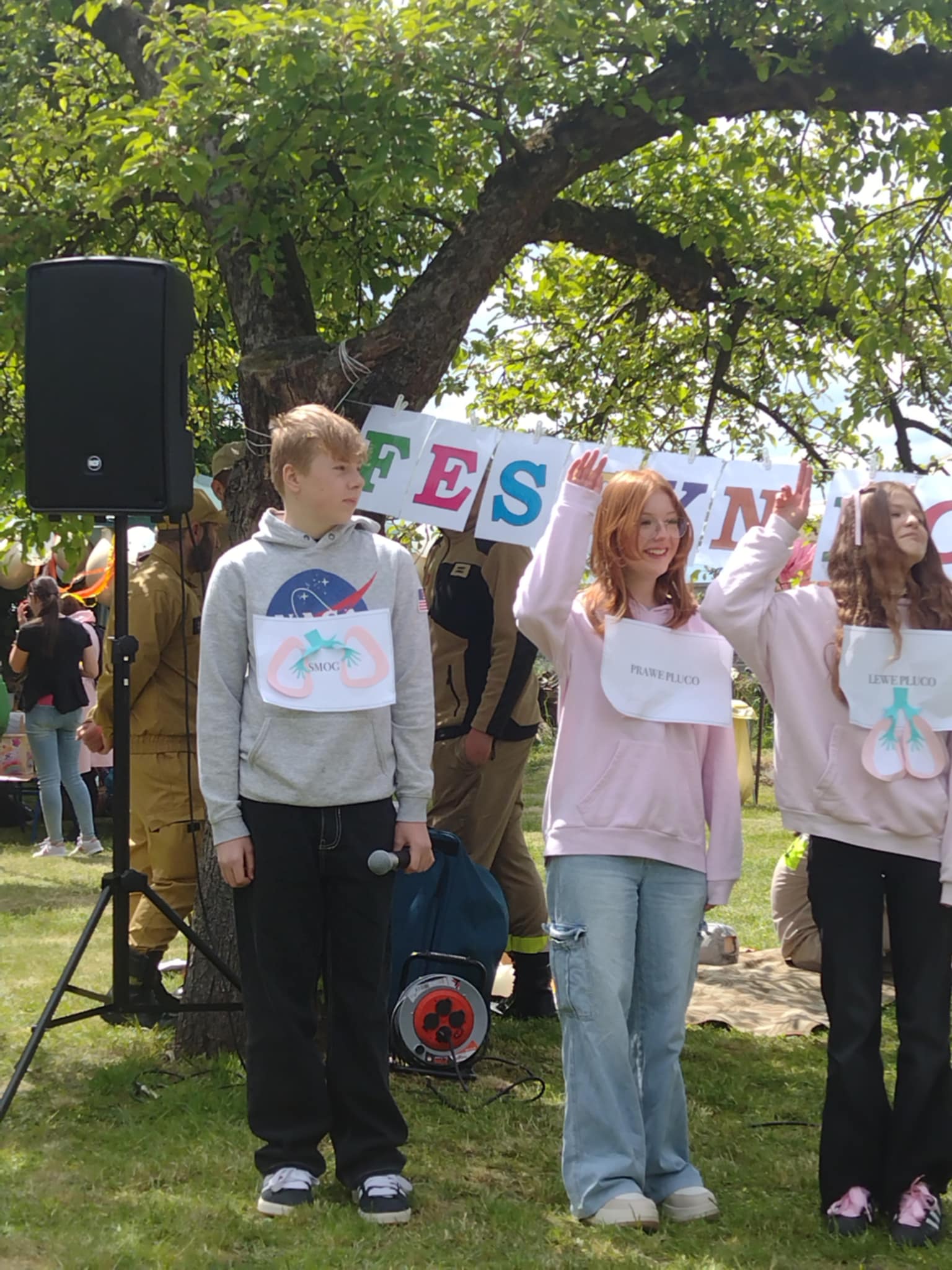 24 maja nasz szkolny sad zamienił się w kolorowe Centrum Zarządzania Zdrowiem. Cała społeczność szkoły zaangażowała się w organizację festynu pod hasłem „Aktywnie, Zdrowo, Kolorowo”, podczas którego popularyzowano wiedzę o zdrowym odżywianiu i działaniu najważniejszych organów naszego ciała oraz profilaktykę ich chorób. Klasy zaprezentowały stoiska poświęcone sercu, mózgowi, skórze, płucom, zębom, higienie osobistej i aktywności ruchowej, na których można było skosztować dań i produktów wspierających pracę i zdrowie organów naszego ciała. Na zaimprowizowanej scenie w otoczeniu zieleni wybrzmiały skecze i piosenki związane z tematyką przygotowanych stoisk. Mieszkańcy Baszkowa mogli zmierzyć sobie ciśnienie oraz zapoznać się z programem DKMS „Zostań potencjalnym dawcą szpiku”. Strażacy z MDP przy OSP w Zdunach prowadzili pokazy resuscytacji krążeniowo – oddechowej (RKO). Niezwykłe warsztaty z krioterapii prowadziła nasza niezastąpiona pani od magicznej chemii – Magdalena Roszak, a warsztatom towarzyszyła fotorelacja z całorocznej pracy kółka „Chemiczna Paleta Barw”. Nasze profilaktyczne działania wspierały także: zielarskie stoisko Katarzyny Georgiu oraz Pasieka Leśna Mirosława Jelonka. Nie zabrakło także tradycyjnych stoisk z grillem, słodkimi wypiekami i lokalnymi produktami spożywczymi oraz warzywami i owocami. Dmuchane zjeżdżalnie oraz sportowa rywalizacja grupowa wpierały nas w popularyzowaniu aktywności fizycznej. Dziękujemy wszystkim zaangażowanym w organizację festynu nauczycielom, uczniom, pracownikom szkoły oraz Radzie Rodziców i wszystkim rodzicom dyżurującym przy stoiskach gastronomicznych oraz wspomagających stoiska klasowe. Nasz festyn wsparły także lokalne firmy, którym składamy gorące podziękowania za zainteresowanie naszym projektem i zaangażowanie w jego realizację. Pełną listę naszych sponsorów opublikujemy w następnym poście.