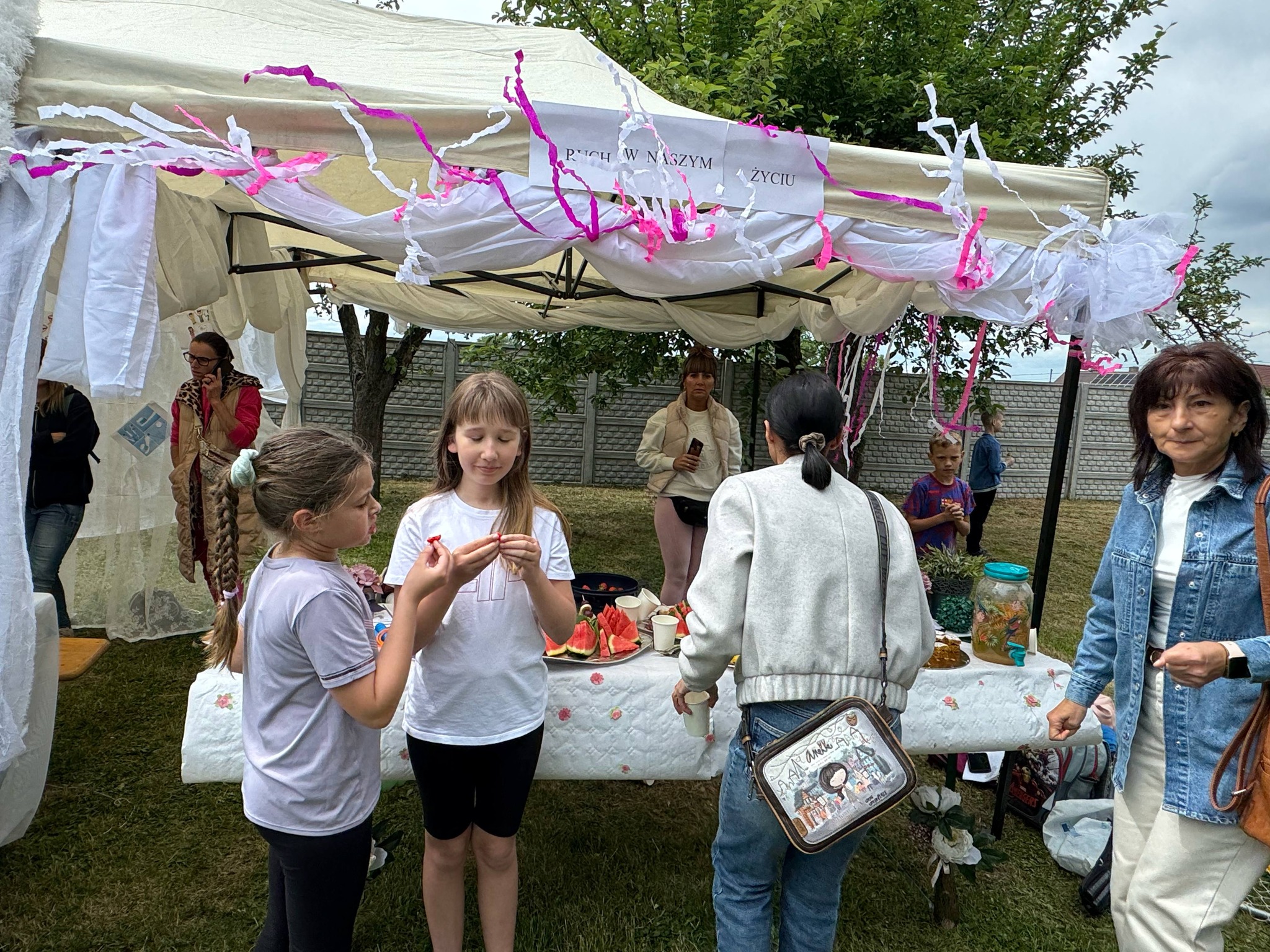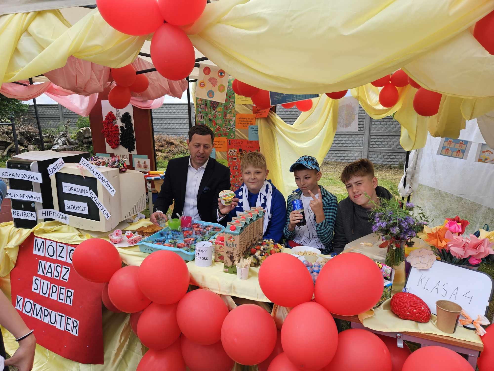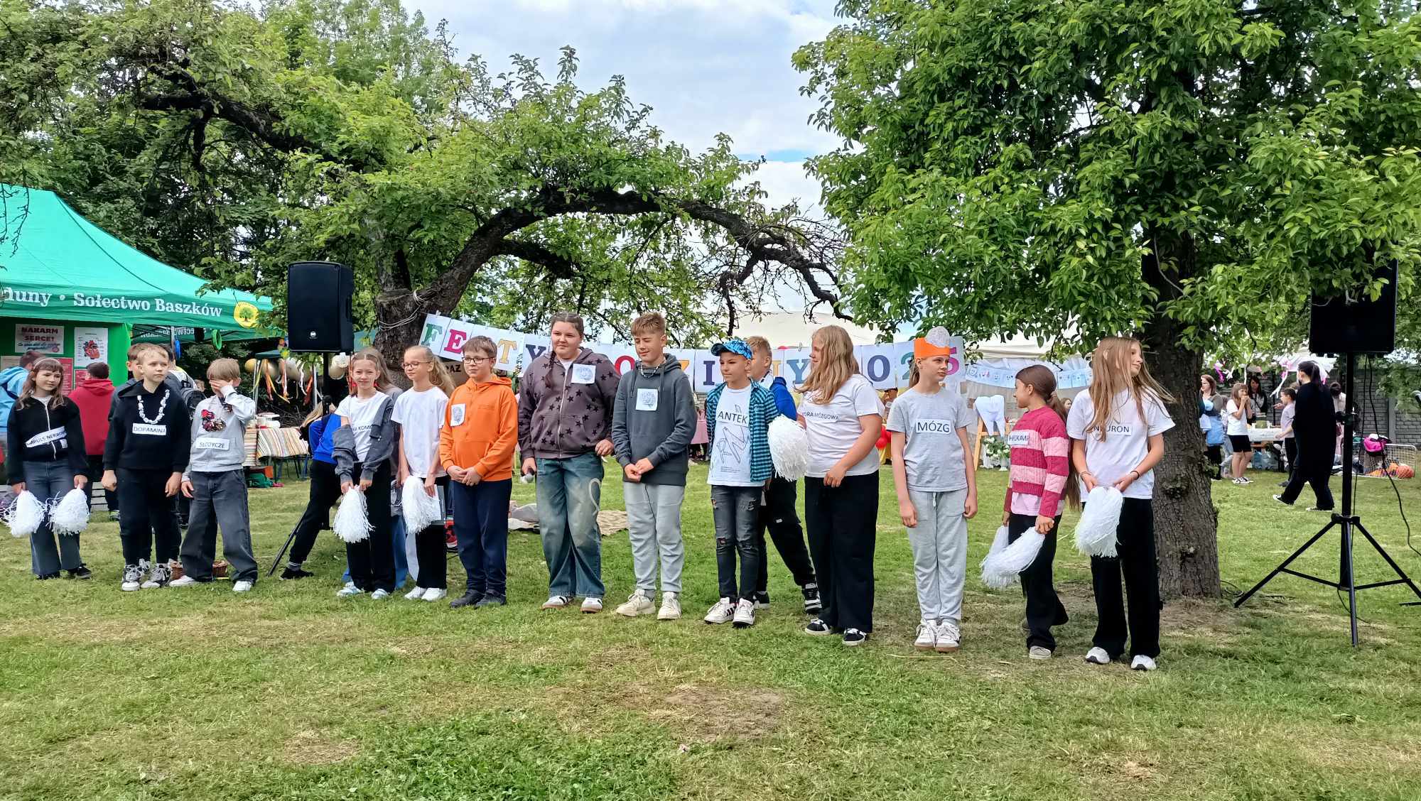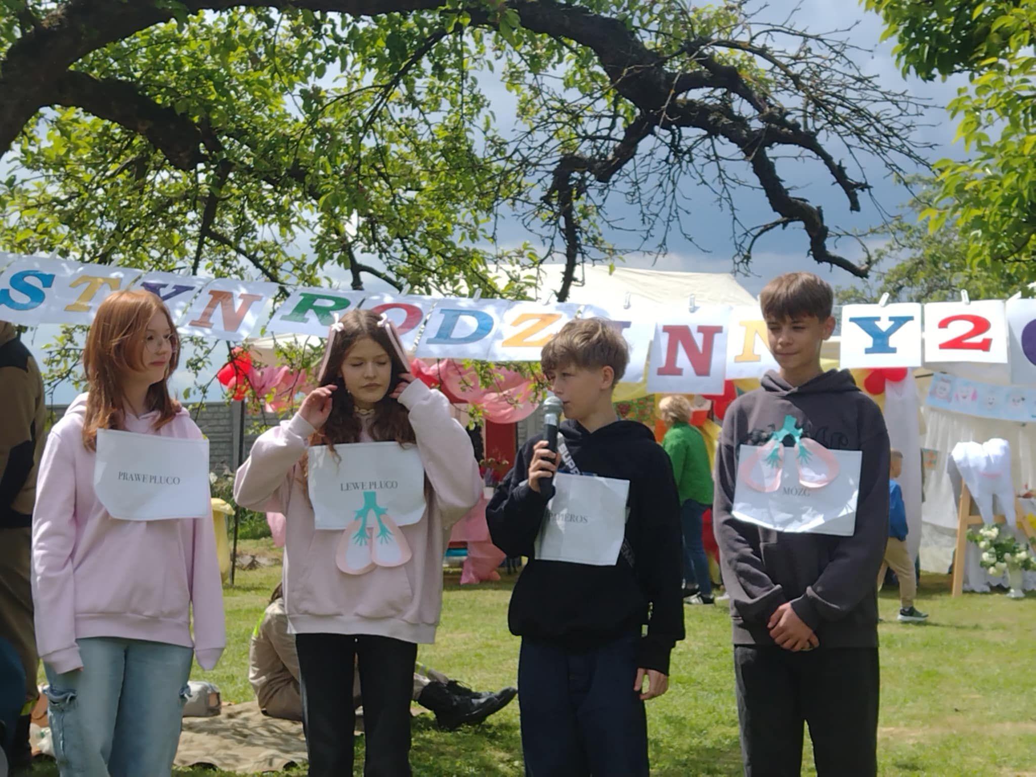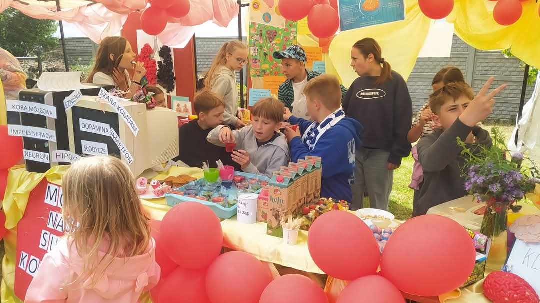 24 maja nasz szkolny sad zamienił się w kolorowe Centrum Zarządzania Zdrowiem. Cała społeczność szkoły zaangażowała się w organizację festynu pod hasłem „Aktywnie, Zdrowo, Kolorowo”, podczas którego popularyzowano wiedzę o zdrowym odżywianiu i działaniu najważniejszych organów naszego ciała oraz profilaktykę ich chorób. Klasy zaprezentowały stoiska poświęcone sercu, mózgowi, skórze, płucom, zębom, higienie osobistej i aktywności ruchowej, na których można było skosztować dań i produktów wspierających pracę i zdrowie organów naszego ciała. Na zaimprowizowanej scenie w otoczeniu zieleni wybrzmiały skecze i piosenki związane z tematyką przygotowanych stoisk. Mieszkańcy Baszkowa mogli zmierzyć sobie ciśnienie oraz zapoznać się z programem DKMS „Zostań potencjalnym dawcą szpiku”. Strażacy z MDP przy OSP w Zdunach prowadzili pokazy resuscytacji krążeniowo – oddechowej (RKO). Niezwykłe warsztaty z krioterapii prowadziła nasza niezastąpiona pani od magicznej chemii – Magdalena Roszak, a warsztatom towarzyszyła fotorelacja z całorocznej pracy kółka „Chemiczna Paleta Barw”. Nasze profilaktyczne działania wspierały także: zielarskie stoisko Katarzyny Georgiu oraz Pasieka Leśna Mirosława Jelonka. Nie zabrakło także tradycyjnych stoisk z grillem, słodkimi wypiekami i lokalnymi produktami spożywczymi oraz warzywami i owocami. Dmuchane zjeżdżalnie oraz sportowa rywalizacja grupowa wpierały nas w popularyzowaniu aktywności fizycznej. Dziękujemy wszystkim zaangażowanym w organizację festynu nauczycielom, uczniom, pracownikom szkoły oraz Radzie Rodziców i wszystkim rodzicom dyżurującym przy stoiskach gastronomicznych oraz wspomagających stoiska klasowe. Nasz festyn wsparły także lokalne firmy, którym składamy gorące podziękowania za zainteresowanie naszym projektem i zaangażowanie w jego realizację. Pełną listę naszych sponsorów opublikujemy w następnym poście.