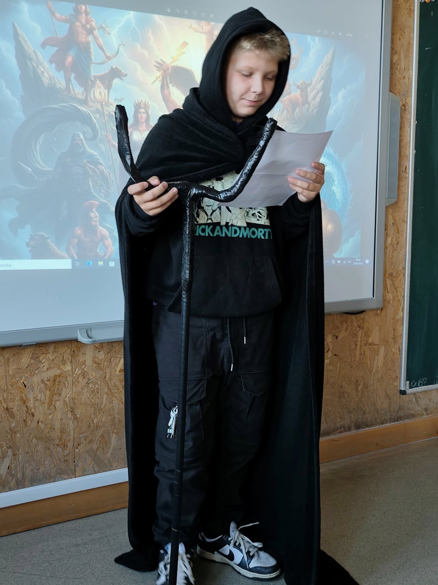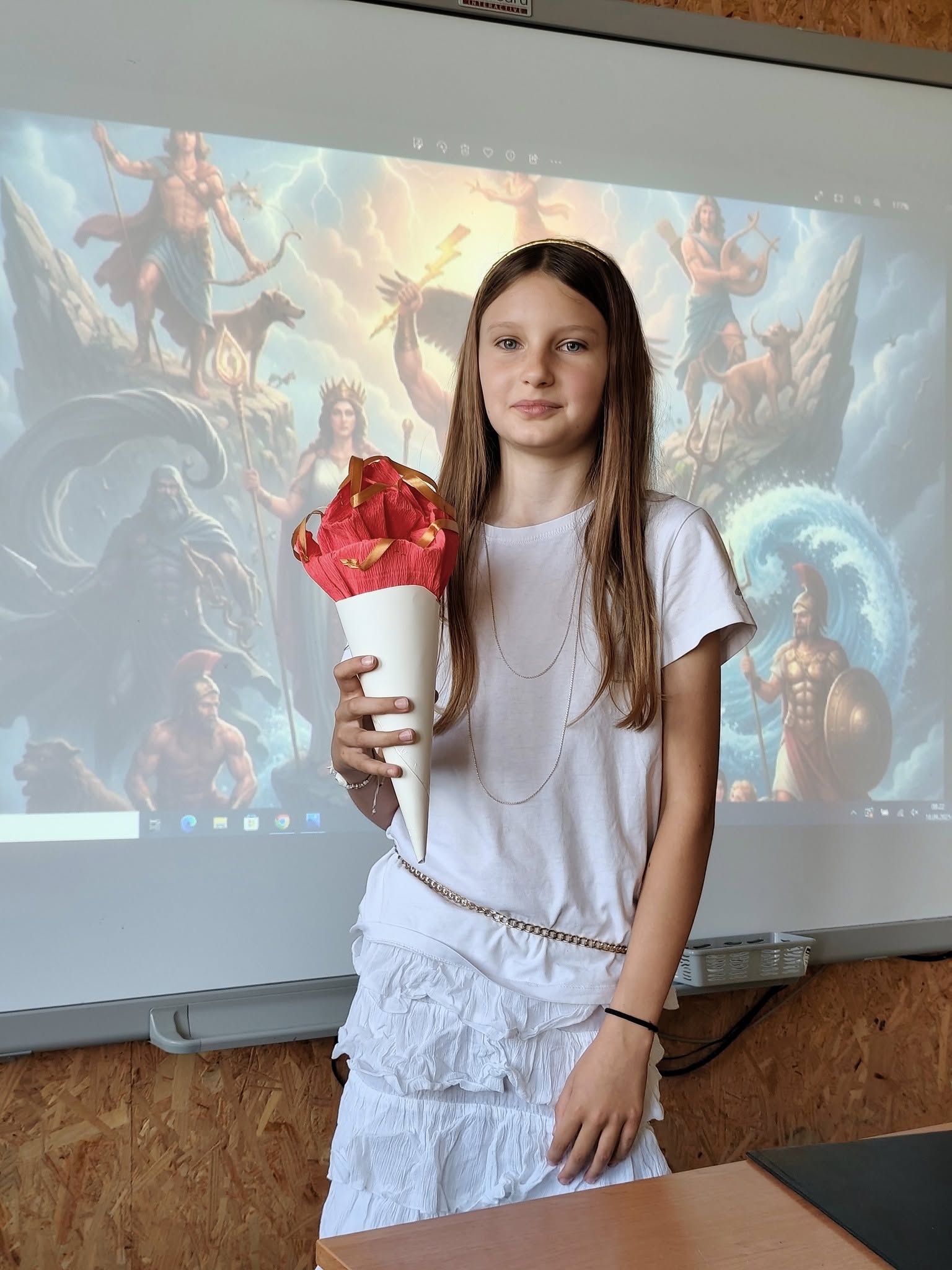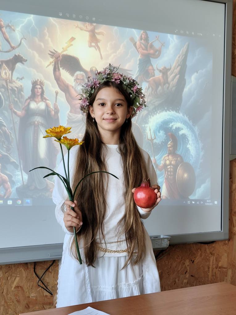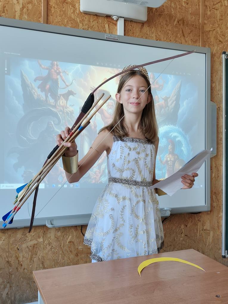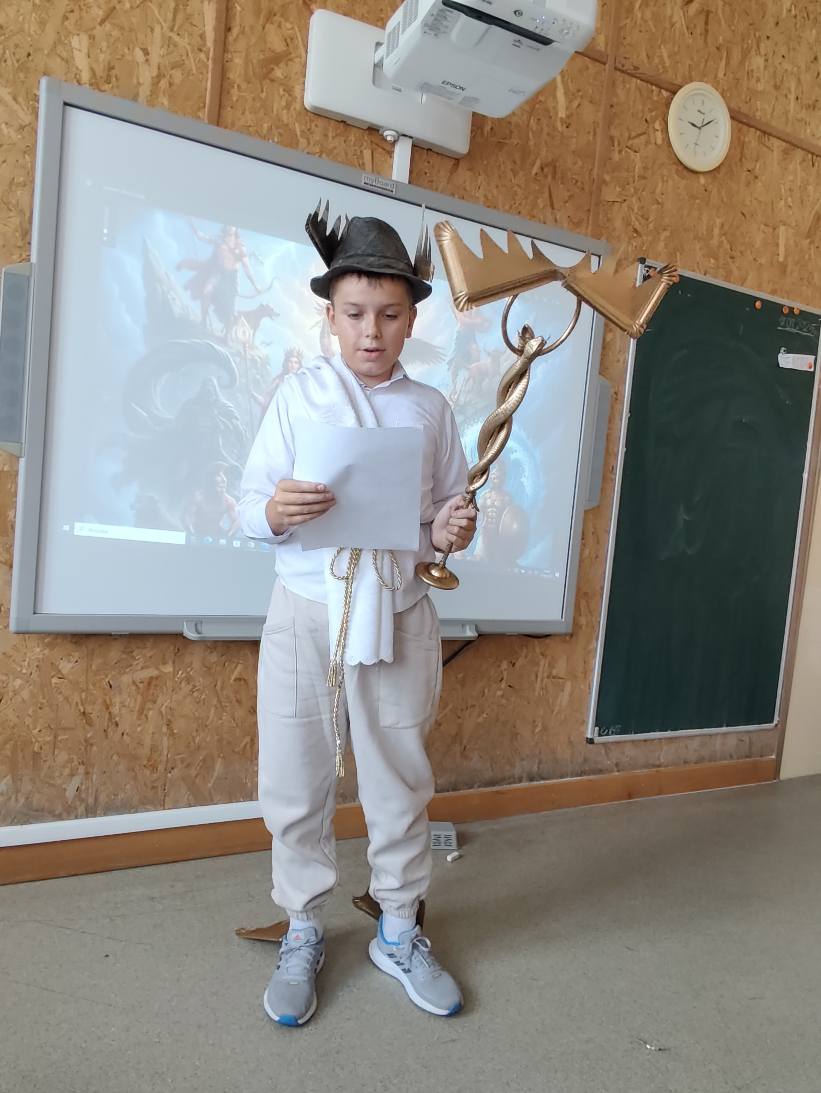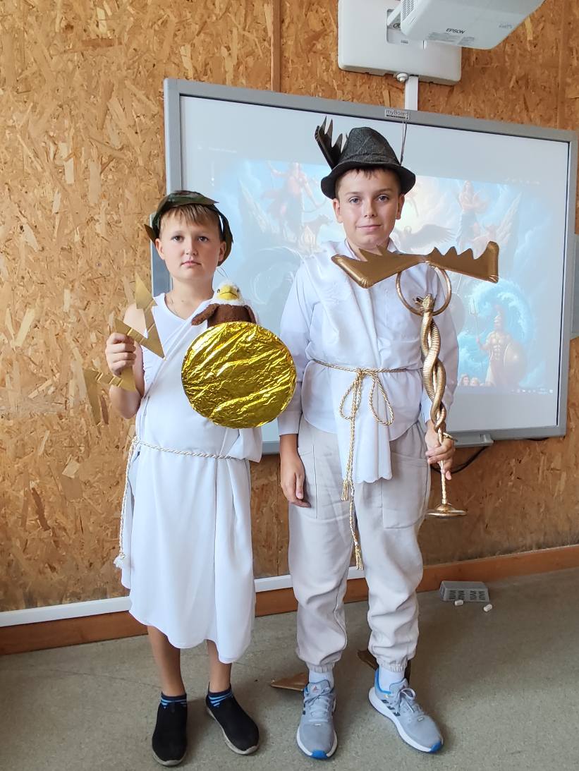 Jak co roku we wrześniu klasa 5 rozpoczyna swoją przygodę z mitologią grecką wielką prezentacją bogow olimpijskich. Ta niezwykła lekcja, pełna emocji związanych z odkrywaniem relacji między mitologicznymi postaciami, pozwala zapamiętać na lata przygody i atrybuty bogów. Świat greckiej mitologii to jeden z ważnych fundamentów kultury śródziemnomorskiej, której jesteśmy spadkobiercami. Klasa 5 rewelacyjnie przygotowała się do prezentacji, zbierając informacje o swoich bohaterach i wcielając się w nich przebraniem i przyniesionymi atrybutami. Wielka olimpijska rodzina przedstawiła się także uczniom klas 1 – 3 oraz zafundowała powtórkę z mitologii klasie 8. Okazało się, że najstarsi uczniowie sporo pamiętają z lekcji, którą trzy lata temu sami przerabiali. Znakomicie poradzili sobie z uporządkowaniem pozamienianych między bogami atrybutów. Jak widać najlepszą formą nauki jest dobra zabawa!