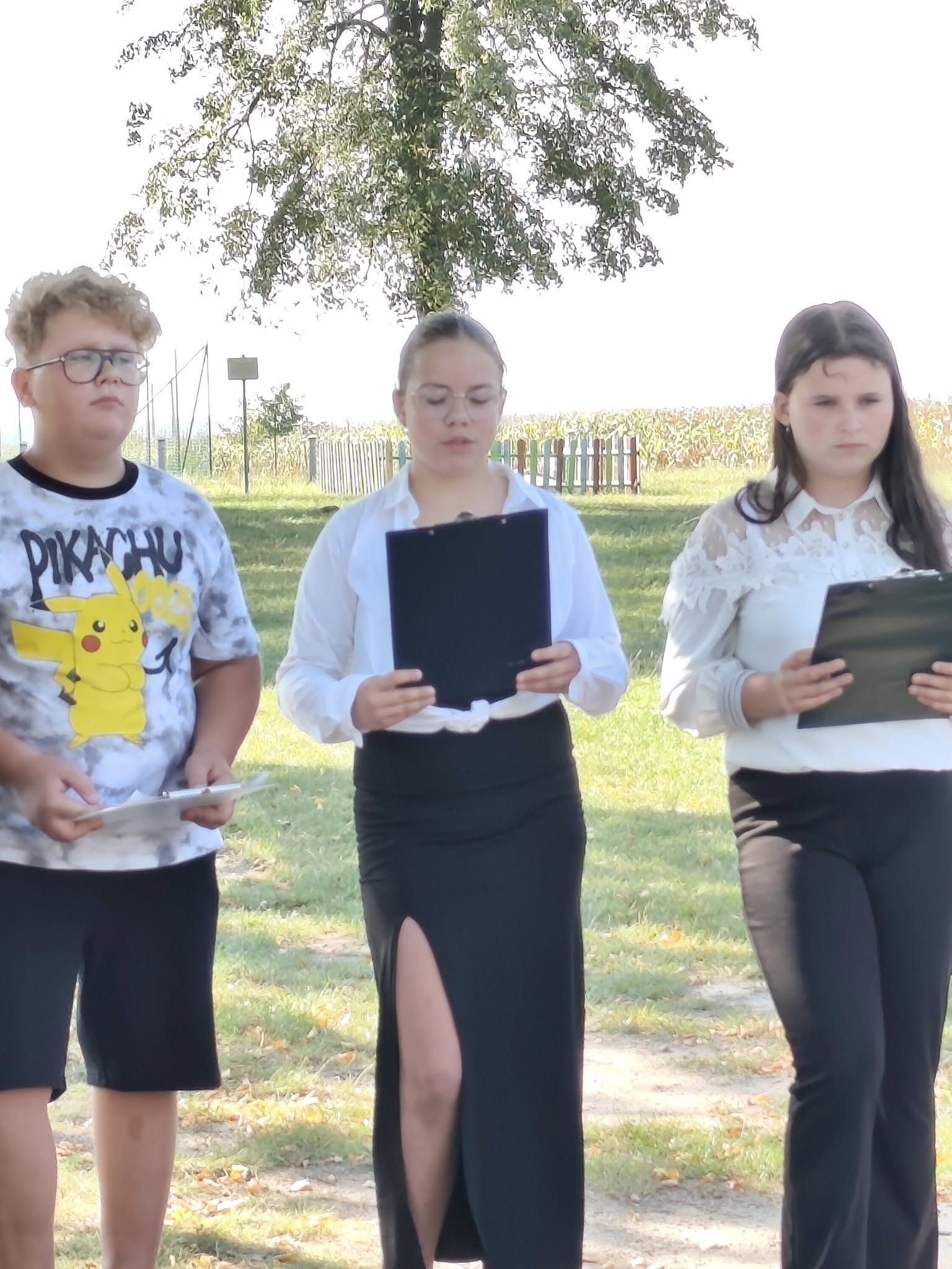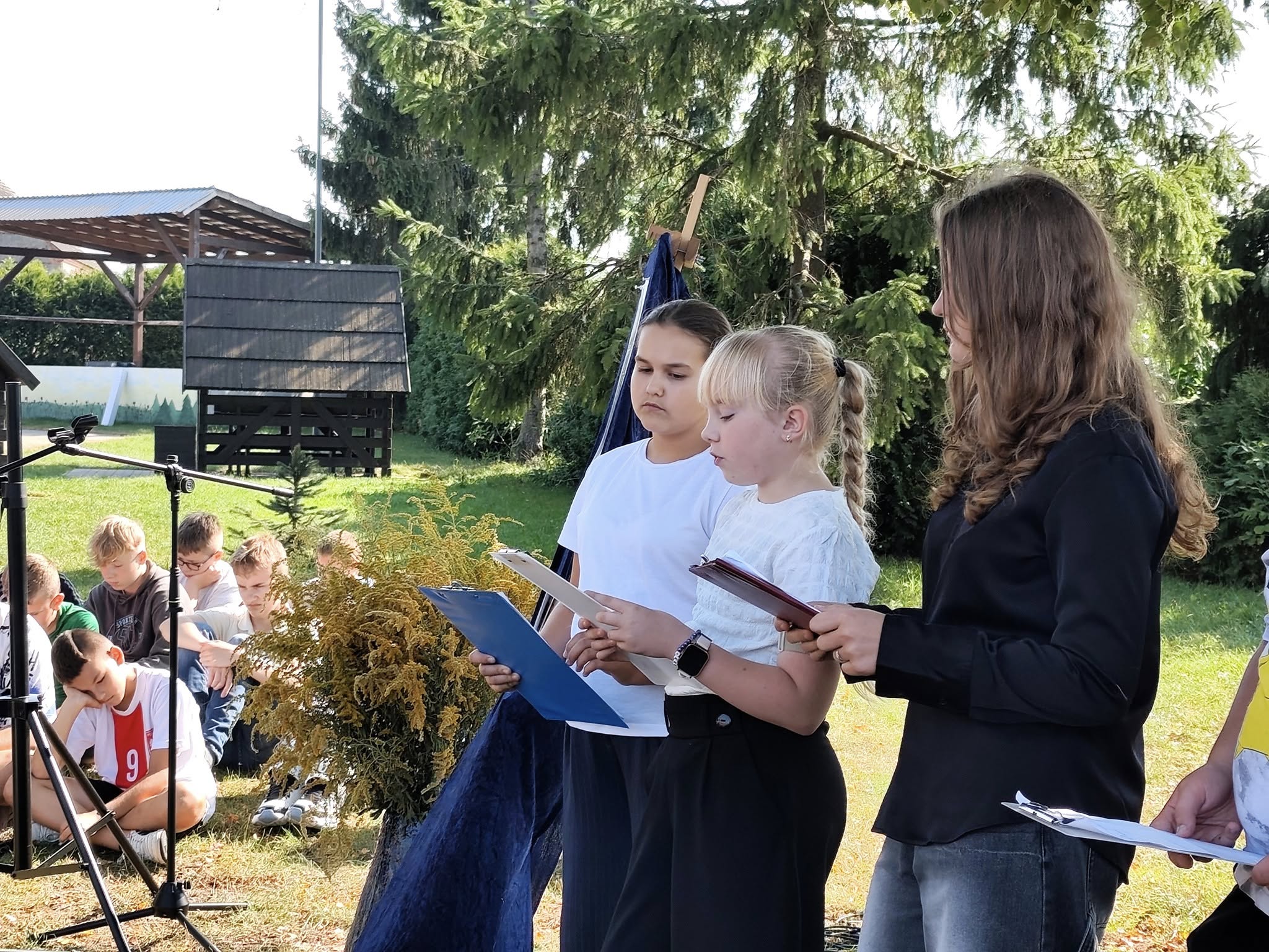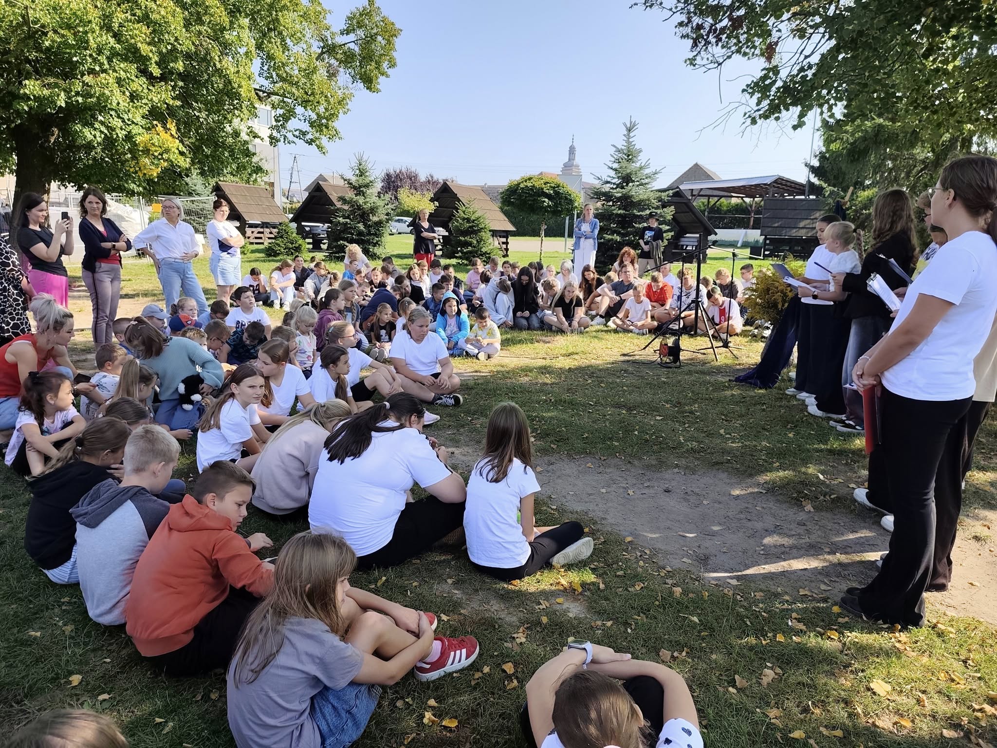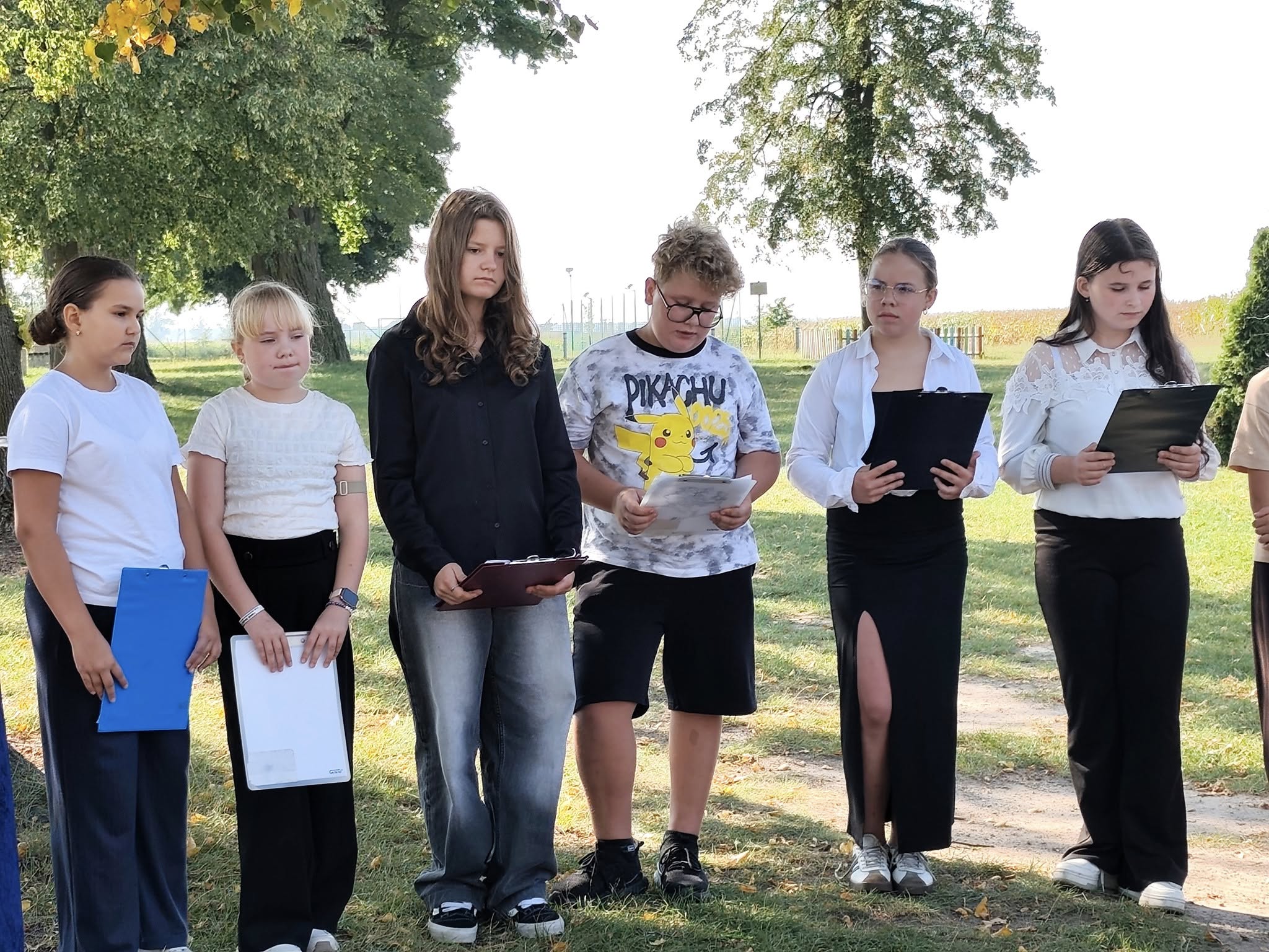 Nasza społeczność wzięła dziś udział w szkolnej odsłonie ogólnopolskiej akcji „Narodowe Czytanie 2025”. Tegoroczna edycja wydarzenia organizowanego pod patronatem Prezydenta Rzeczypospolitej Polskiej poświęcona była poezji Jana Kochanowskiego – renesansowego mistrza poezji i ojca polskiego języka literackiego. Zgodnie z zaproszeniem poety jako goście zasiedliśmy pod lipami, by wysłuchać fragmentów najpopularniejszych fraszek, pieśni i trenów odczytanych przez uczniów kl. 6. Uczniowie poznali twórczość Kochanowskiego pod kątem prawdziwie renesansowej różnorodności jej tematyki.