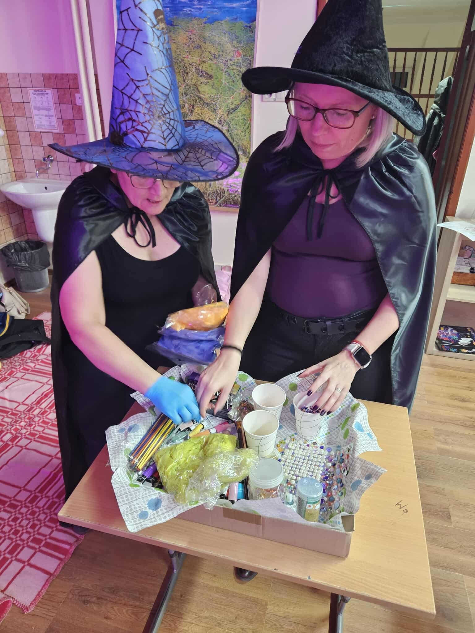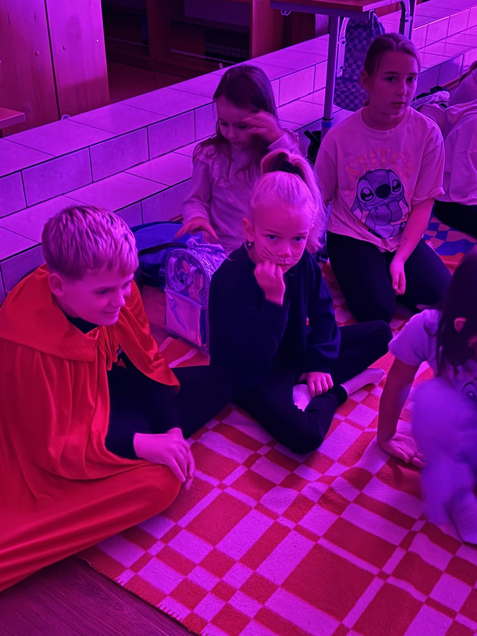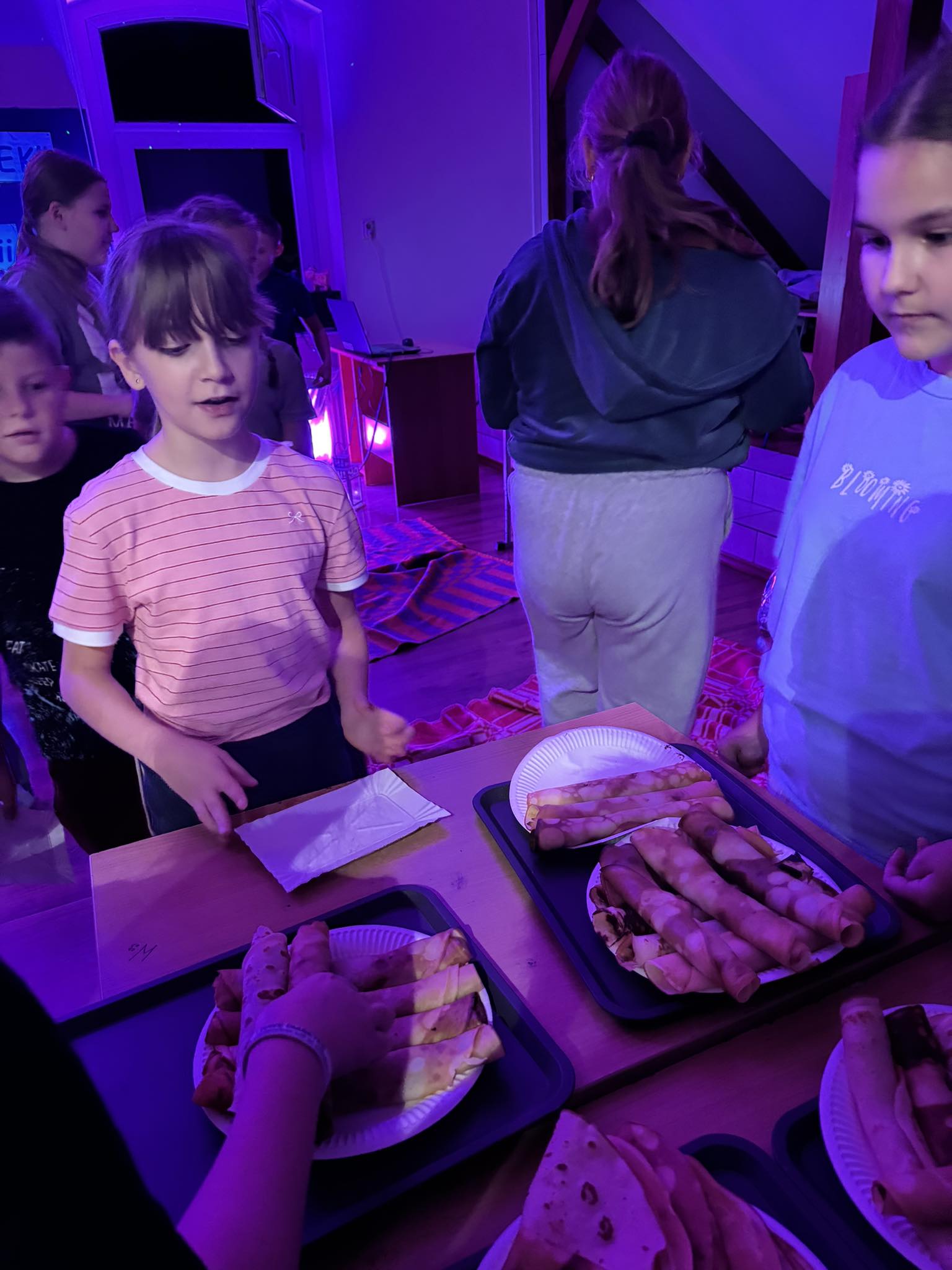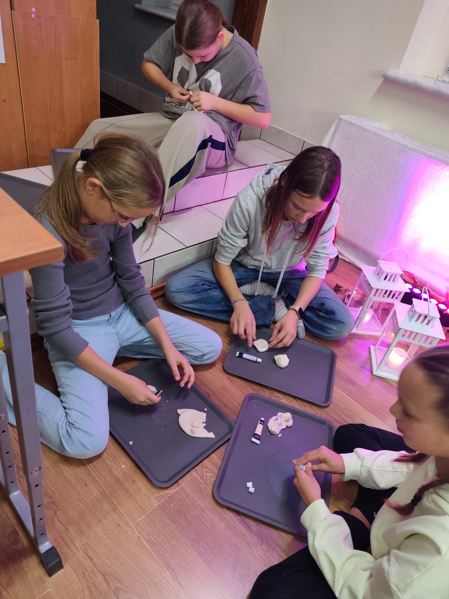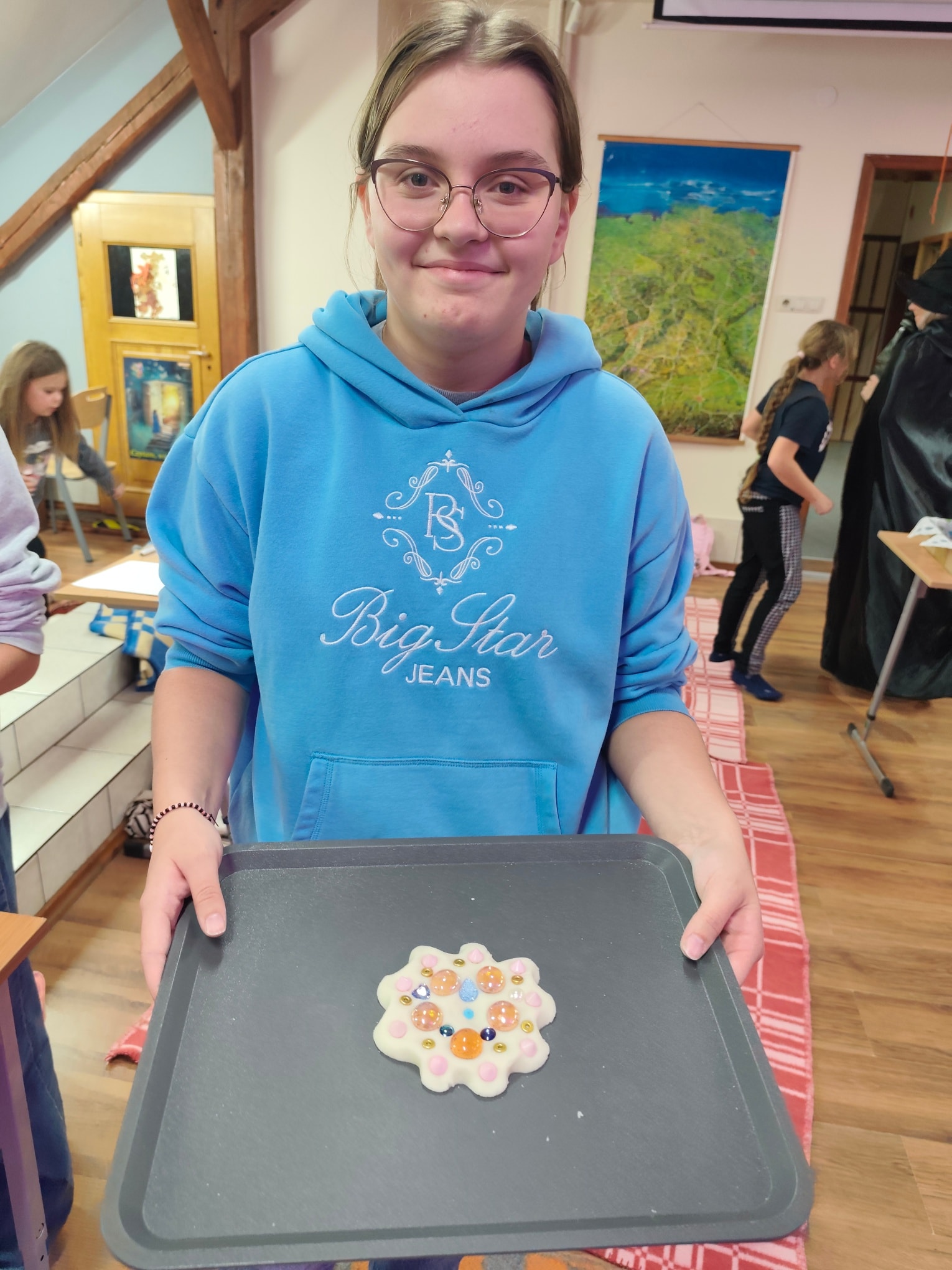 Piątkowy październikowy wieczór (17.10.2025) w szkolnej bibliotece był prawdziwą ucztą czarów i magii przygotowaną z okazji Nocy Bibliotek 2025. Uczniowie, którzy przyjęli wyzwanie wstąpienia do Szkolnej Akademii Magii, znakomicie poradzili sobie z egzaminem wiedzy z zakresu magii w literaturze oraz zadaniami warsztatowymi wyrobu amuletów, rozpoznawania ziół i parzenia eliksirów. Szkolenie młodych adeptów magii prowadziły posiadaczki najwyższego stopnia wtajemniczenia w czary - panie Kasia i Ewa przy asystenturze pani Kingi. O słodkie punkty za wiedzę i zaangażowanie dzielnie walczyły cztery drużyny pod wodzą swoich kapitanek, najstarszych czarownic. W przerwie intensywnej nauki w SAMie pani Daria - szefowa naszej magicznej szkoły uraczyła wszystkich przepysznymi, oczywiście magicznym ? naleśnikami. Wyczarowała je dla nas w swojej czarodziejskiej kuchni, do złudzenia przypominającej kuchnię Pana Kleksa. Nasza zabawa zakończyła się wręczeniem Certyfikatów Szkolnej Akademii Magii i pasowaniem na wróżki,magów i czarownice.Z wielkim niedosytem uczniowie opuścili naszą bibliotekę, bo zabawa w niej była naprawdę zajmująca i pełna odkryć. I ja tam byłam, eliksiry piłam, a co zobaczyłam, przed Wami odkryłam.