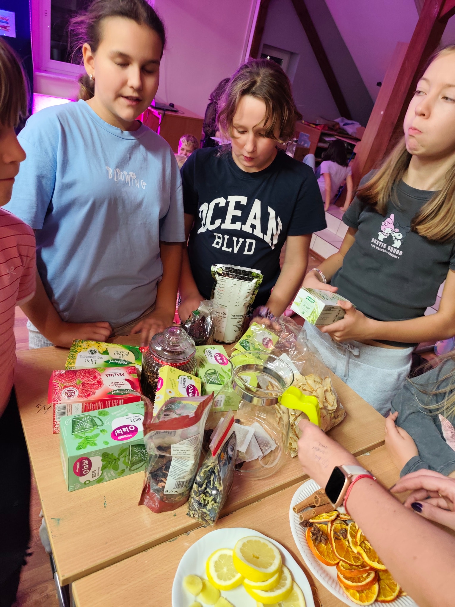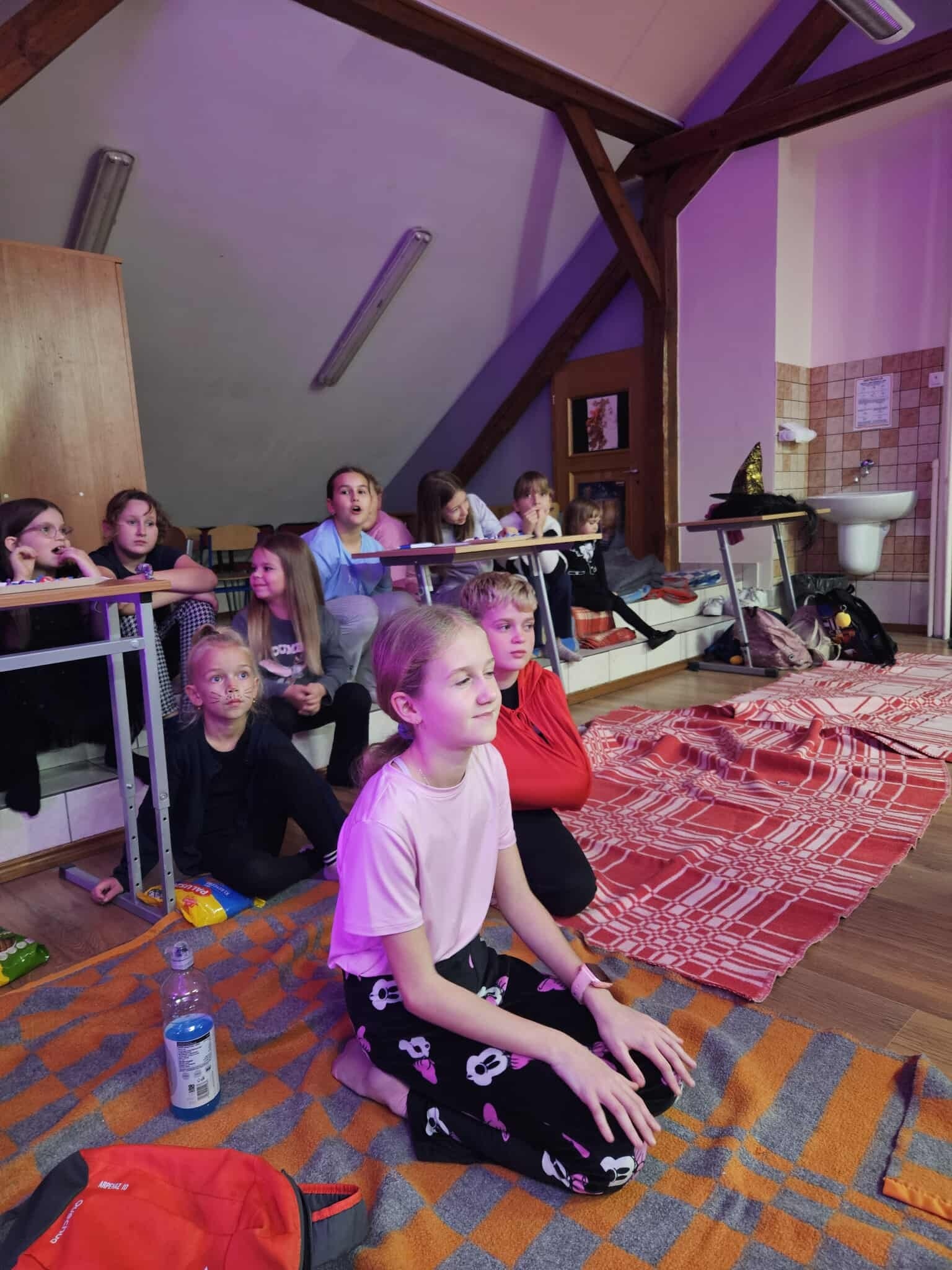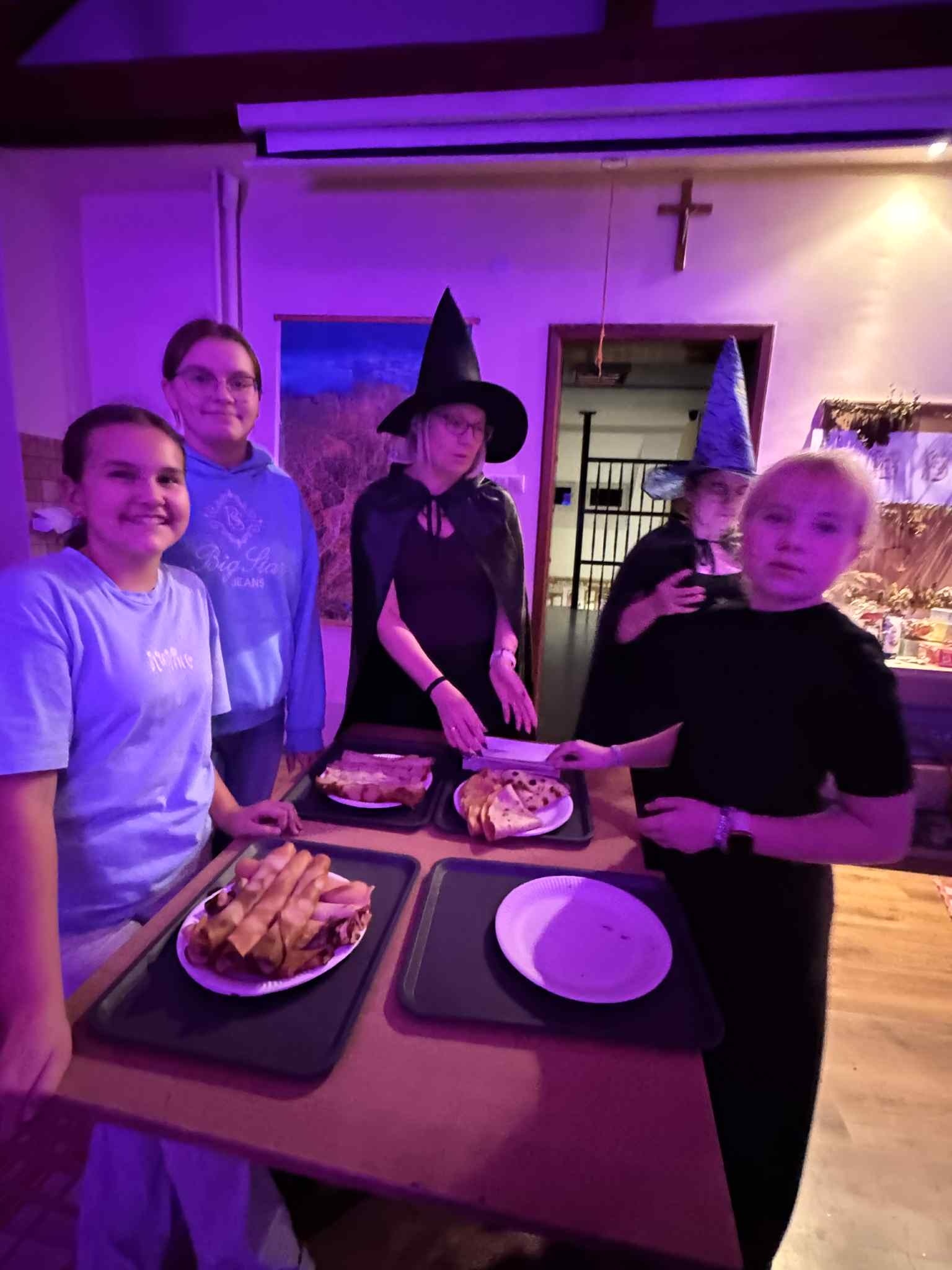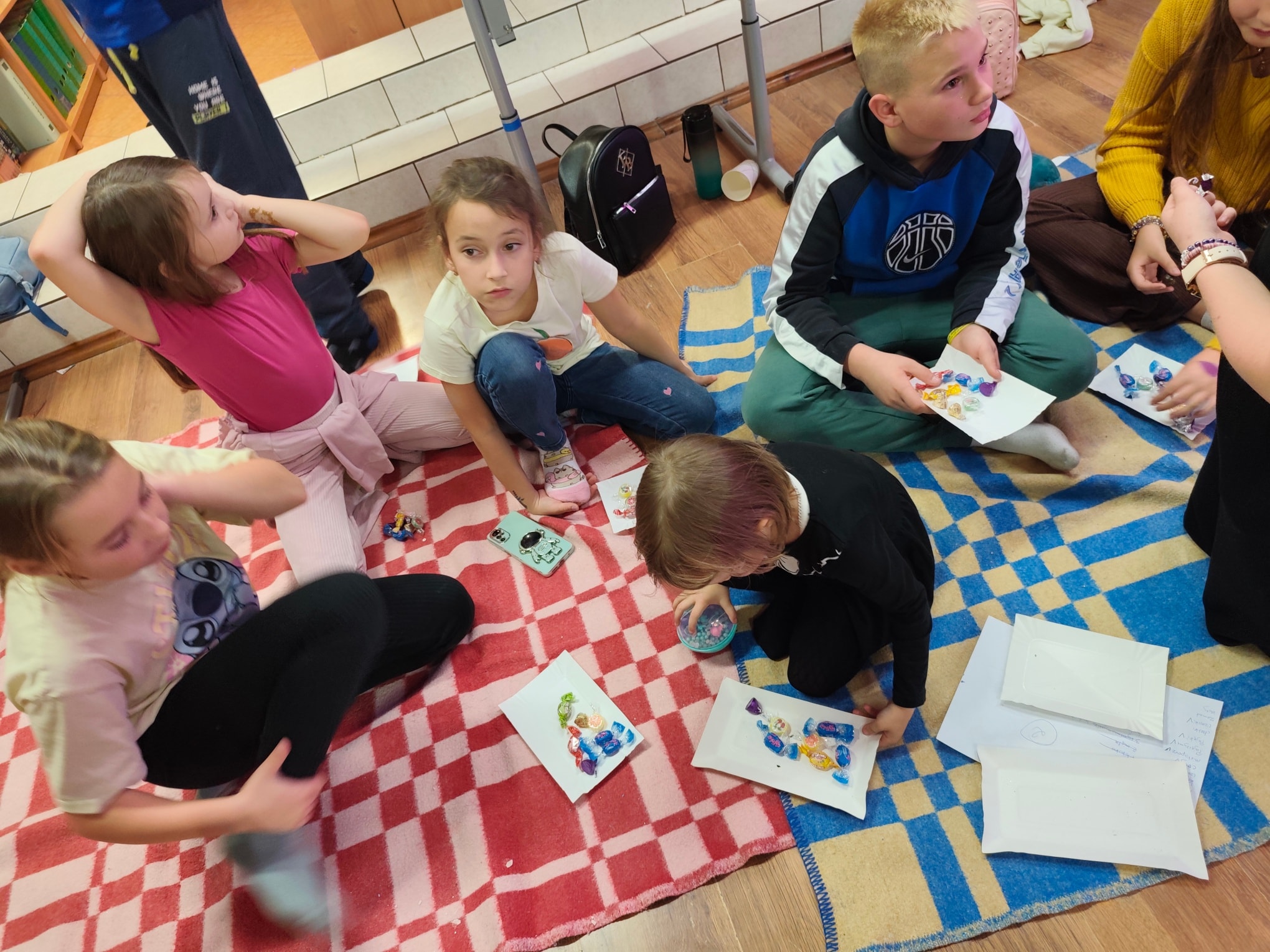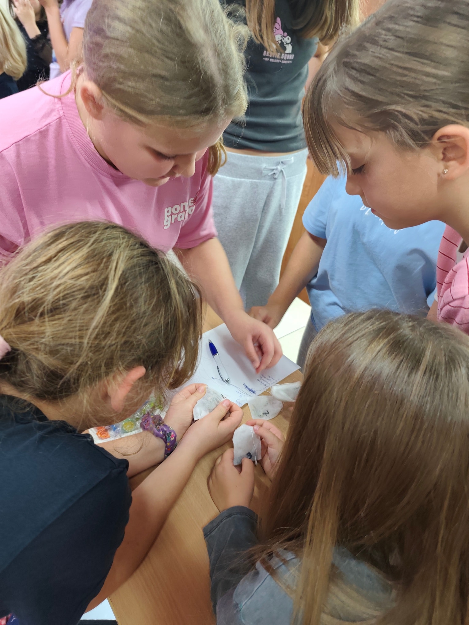 Piątkowy październikowy wieczór (17.10.2025) w szkolnej bibliotece był prawdziwą ucztą czarów i magii przygotowaną z okazji Nocy Bibliotek 2025. Uczniowie, którzy przyjęli wyzwanie wstąpienia do Szkolnej Akademii Magii, znakomicie poradzili sobie z egzaminem wiedzy z zakresu magii w literaturze oraz zadaniami warsztatowymi wyrobu amuletów, rozpoznawania ziół i parzenia eliksirów. Szkolenie młodych adeptów magii prowadziły posiadaczki najwyższego stopnia wtajemniczenia w czary - panie Kasia i Ewa przy asystenturze pani Kingi. O słodkie punkty za wiedzę i zaangażowanie dzielnie walczyły cztery drużyny pod wodzą swoich kapitanek, najstarszych czarownic. W przerwie intensywnej nauki w SAMie pani Daria - szefowa naszej magicznej szkoły uraczyła wszystkich przepysznymi, oczywiście magicznym ? naleśnikami. Wyczarowała je dla nas w swojej czarodziejskiej kuchni, do złudzenia przypominającej kuchnię Pana Kleksa. Nasza zabawa zakończyła się wręczeniem Certyfikatów Szkolnej Akademii Magii i pasowaniem na wróżki,magów i czarownice.Z wielkim niedosytem uczniowie opuścili naszą bibliotekę, bo zabawa w niej była naprawdę zajmująca i pełna odkryć. I ja tam byłam, eliksiry piłam, a co zobaczyłam, przed Wami odkryłam.