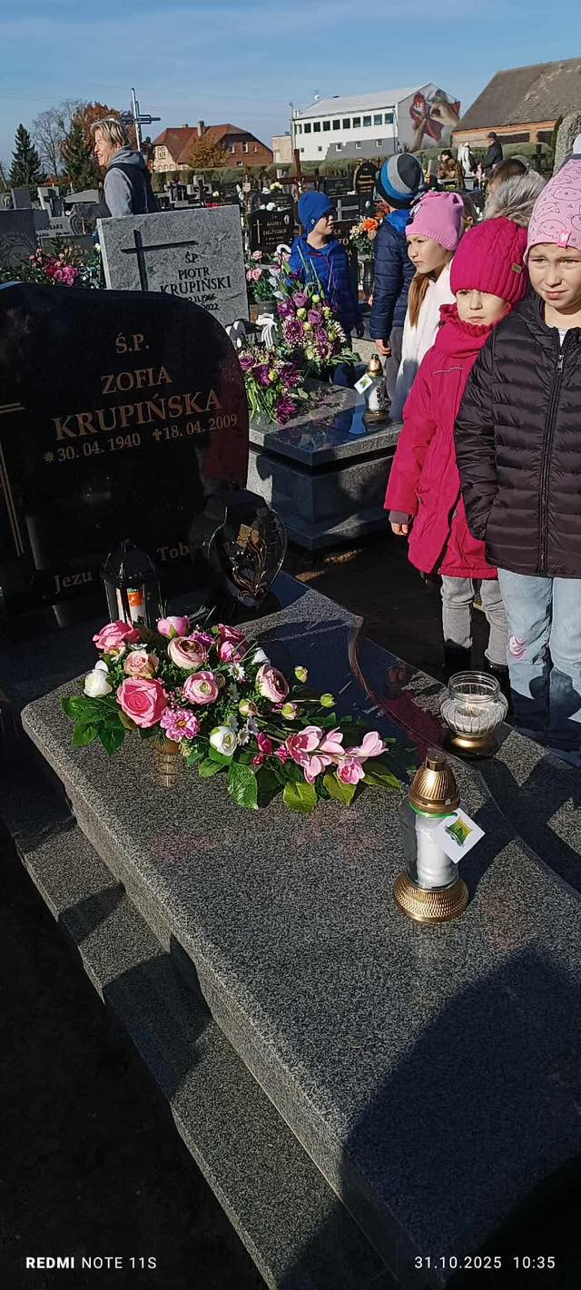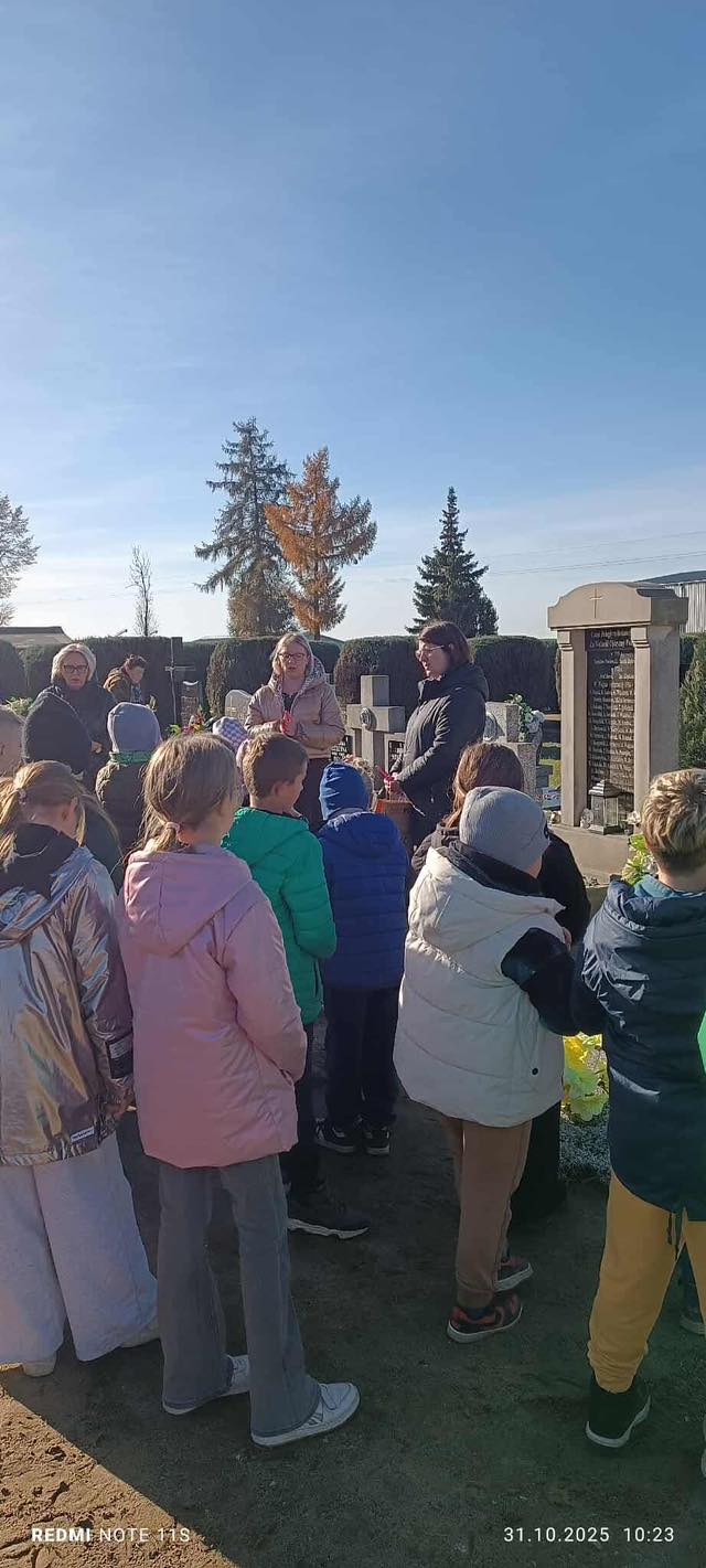 W przededniu 1 Listopada uczniowie wraz z opiekunami poszli na lokalny cmentarz zapalić znicze na grobach poległych bohaterów, zmarłych nauczycieli, pracowników szkoły oraz księży naszej parafii. Chwila refleksji i zadumy, którą spędziliśmy w modlitwie nad grobem Powstańców Wielkopolskich, pozostanie długo w naszej w pamięci.