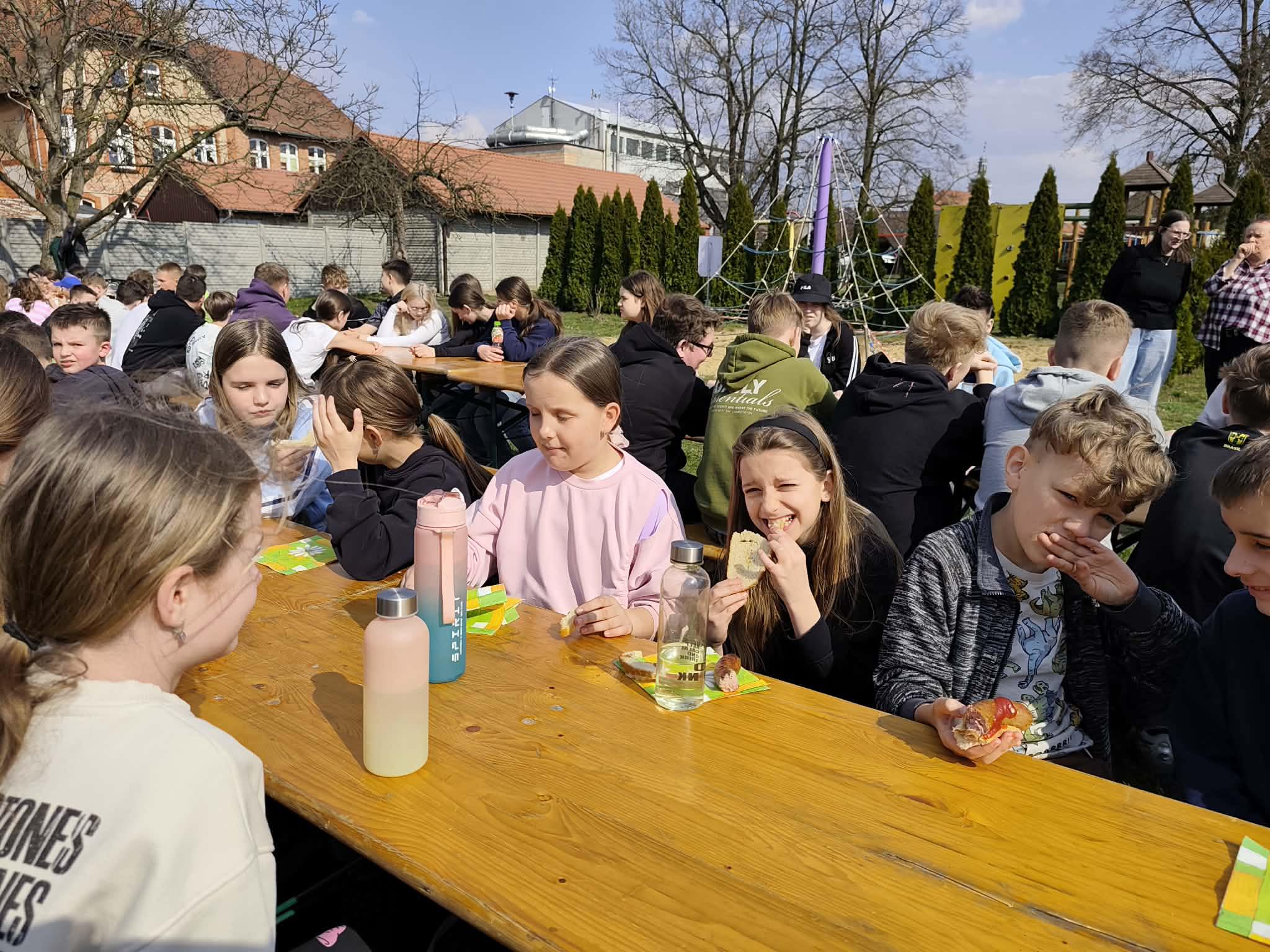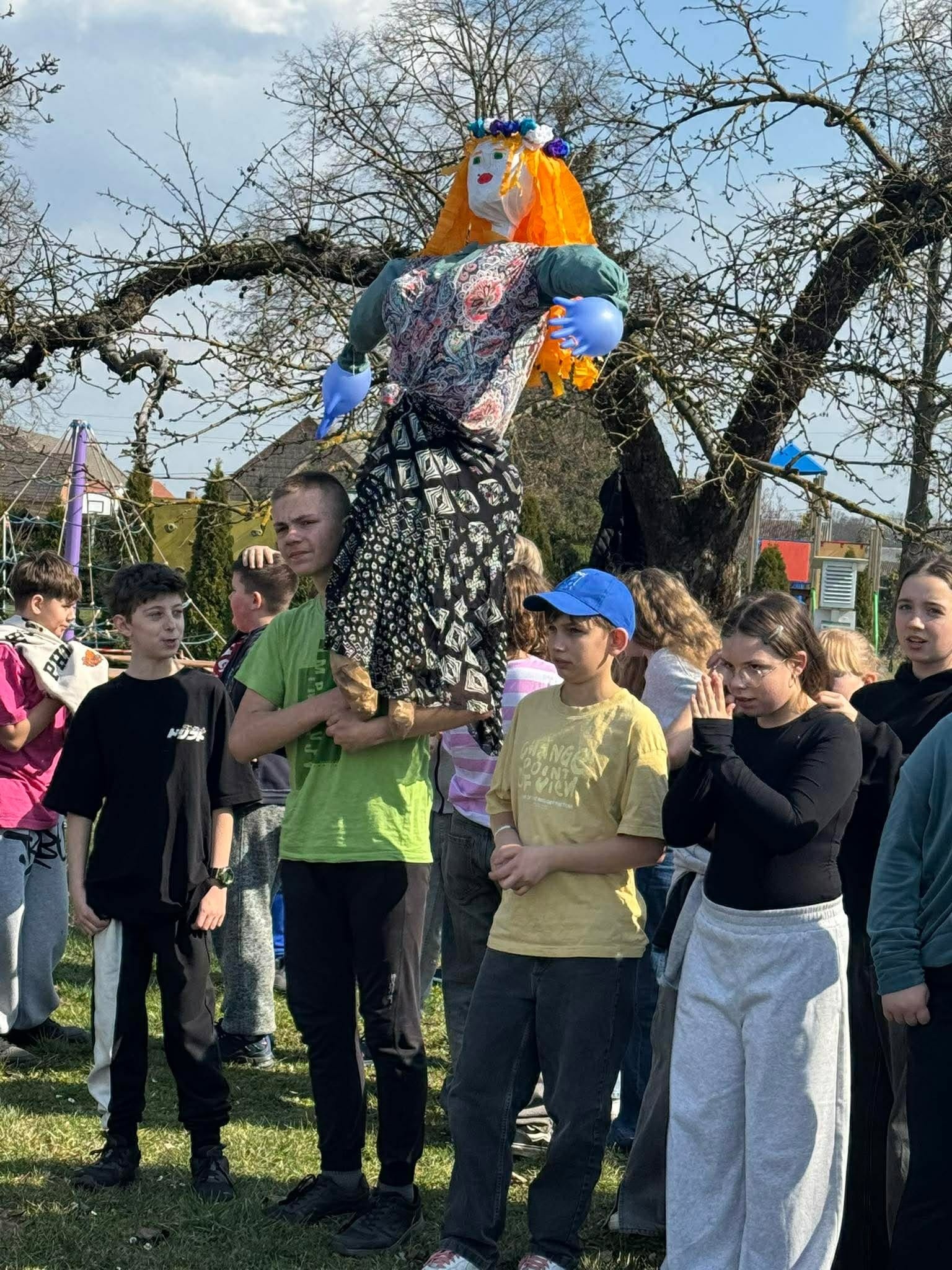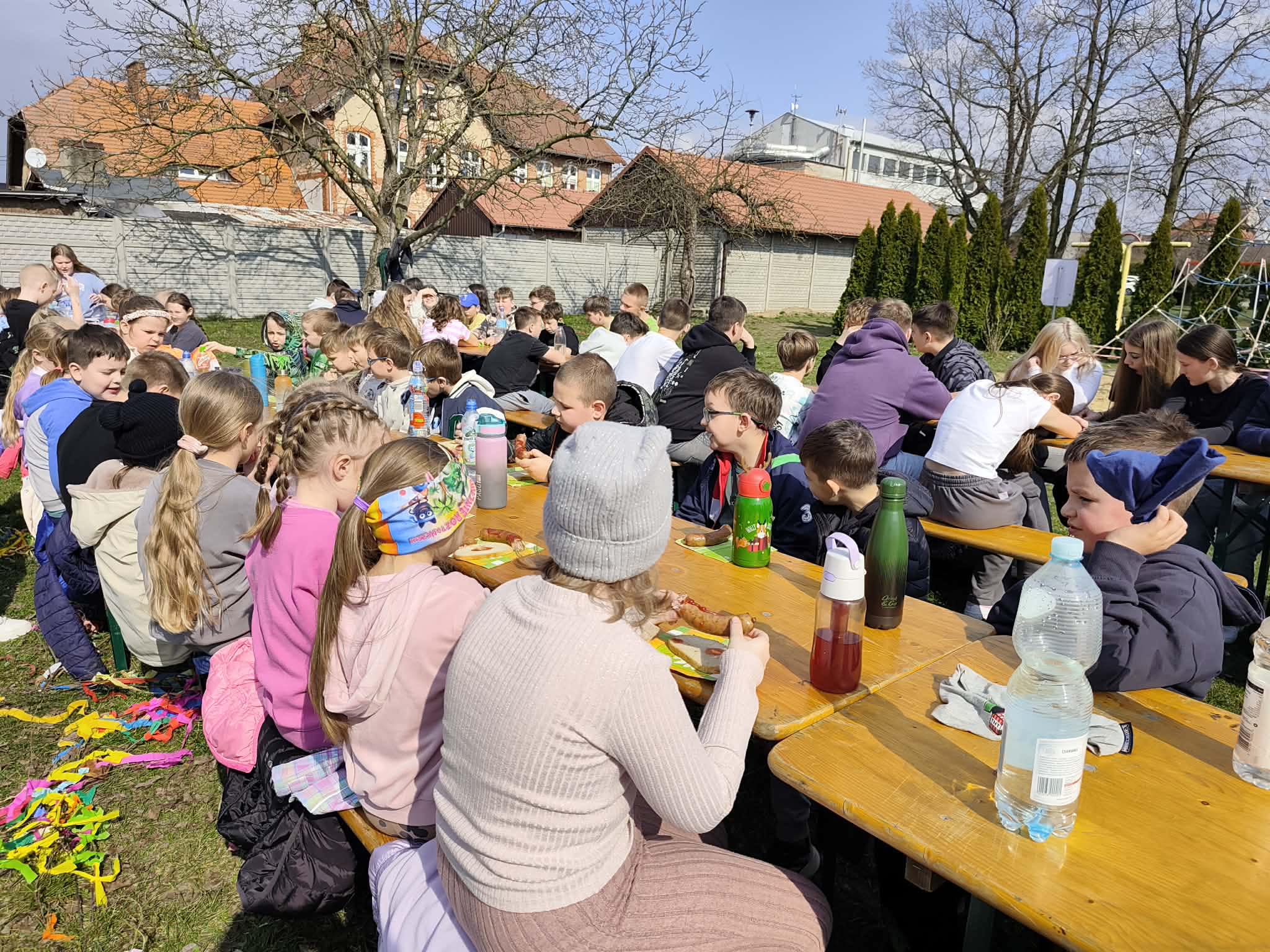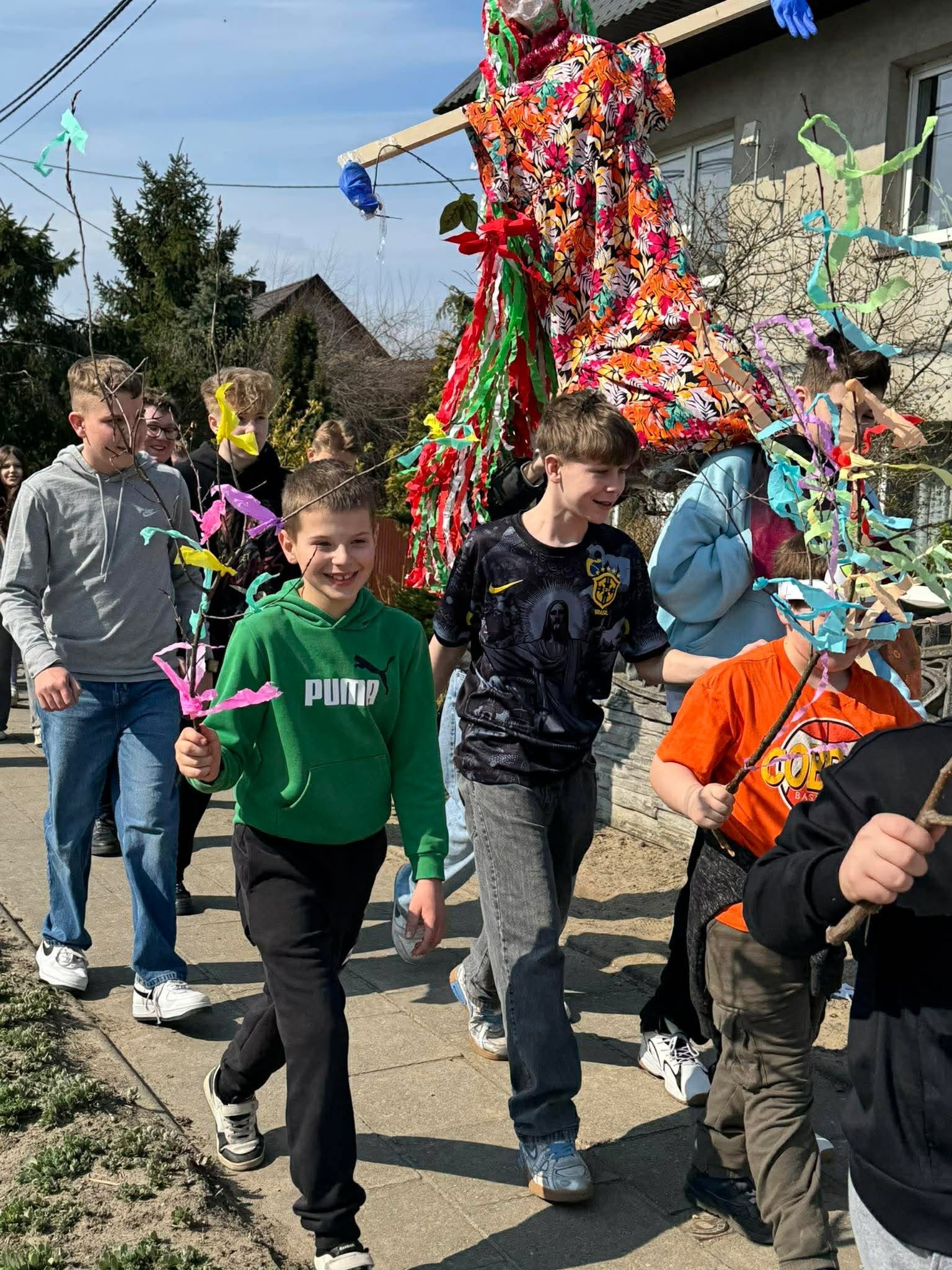 W poniedziałek 23 marca społeczność naszej szkoły świętowała nadejście wiosny. Był to dzień integracji międzyklasowej i okazja do aktywnej zabawy. Jej tematem przewodnim było HOBBY. Osiem czternastoosobowych drużyn pod przewodnictwem uczniów klasy ósmej zmierzyło się z kreatywnymi, naukowymi i praktycznymi wyzwaniami przygotowanymi przez nauczycieli w ośmiu strefach zadaniowych. W tej zabawie liczył się wkład każdego ucznia, bo każdy mógł zdobyć punkt dla swojej drużyny. Zaangażowanie w zabawę było ogromne, a rywalizacja drużyn zacięta. Aby ostudzić emocje wybraliśmy się na krótki spacer po Baszkowie, by oficjalnie pożegnać zimę i przywitać wiosnę piosenką. Klasy młodsze przygotowały na tę okazję barwne gaiki, a starszaki niezwykle „urokliwe” marzanny, które jako symbole odchodzącej zimy po raz ostatni miały okazję popatrzeć na już słoneczne i zazielenione zakątki Baszkowa. Dzień zakończyliśmy przy tradycyjnym ognisku i smacznych kiełbaskach. Witaj wiosno!
