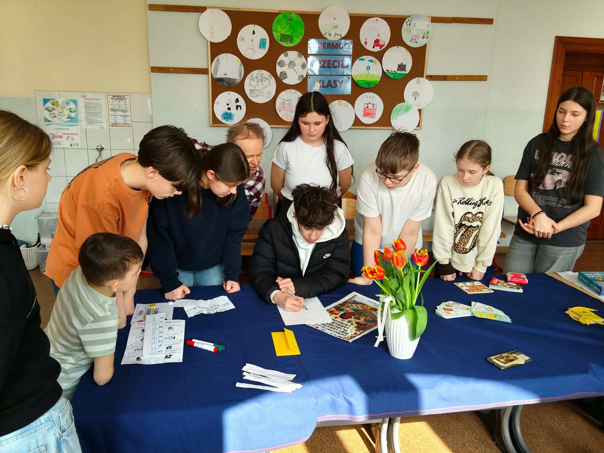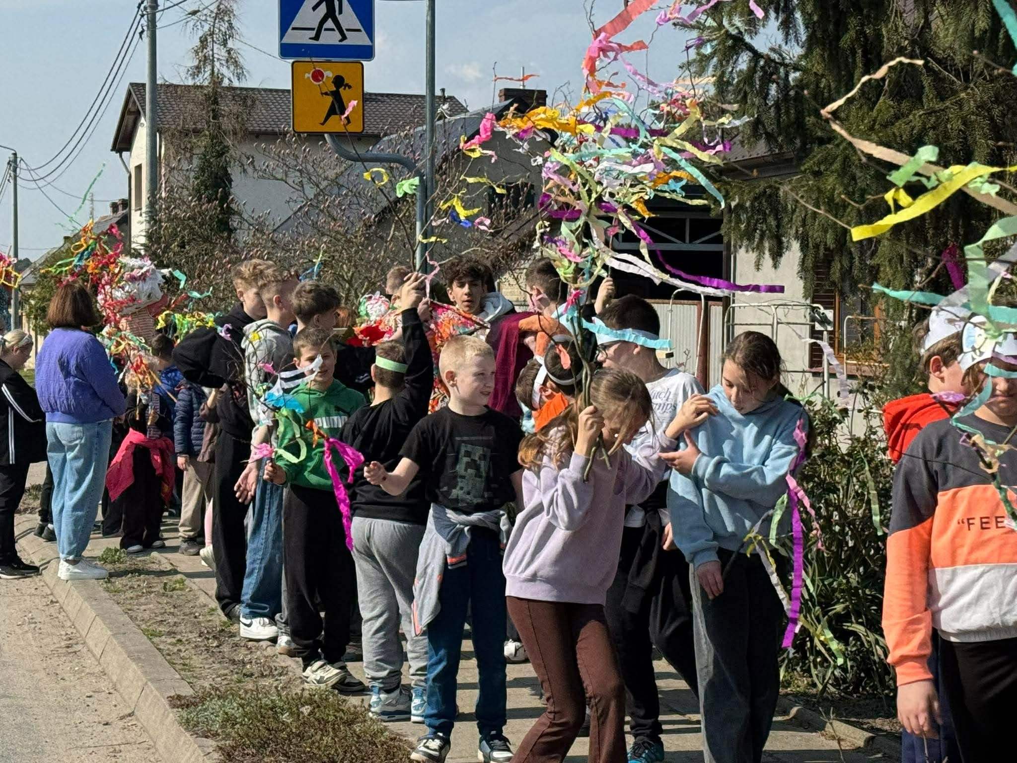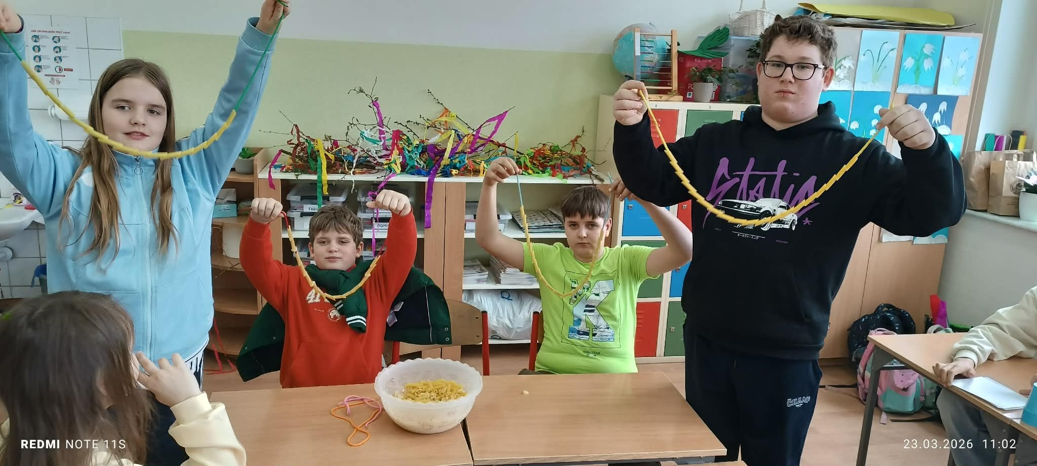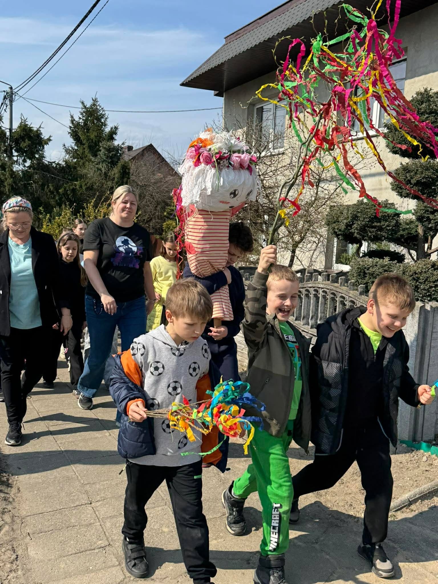 W poniedziałek 23 marca społeczność naszej szkoły świętowała nadejście wiosny. Był to dzień integracji międzyklasowej i okazja do aktywnej zabawy. Jej tematem przewodnim było HOBBY. Osiem czternastoosobowych drużyn pod przewodnictwem uczniów klasy ósmej zmierzyło się z kreatywnymi, naukowymi i praktycznymi wyzwaniami przygotowanymi przez nauczycieli w ośmiu strefach zadaniowych. W tej zabawie liczył się wkład każdego ucznia, bo każdy mógł zdobyć punkt dla swojej drużyny. Zaangażowanie w zabawę było ogromne, a rywalizacja drużyn zacięta. Aby ostudzić emocje wybraliśmy się na krótki spacer po Baszkowie, by oficjalnie pożegnać zimę i przywitać wiosnę piosenką. Klasy młodsze przygotowały na tę okazję barwne gaiki, a starszaki niezwykle „urokliwe” marzanny, które jako symbole odchodzącej zimy po raz ostatni miały okazję popatrzeć na już słoneczne i zazielenione zakątki Baszkowa. Dzień zakończyliśmy przy tradycyjnym ognisku i smacznych kiełbaskach. Witaj wiosno!