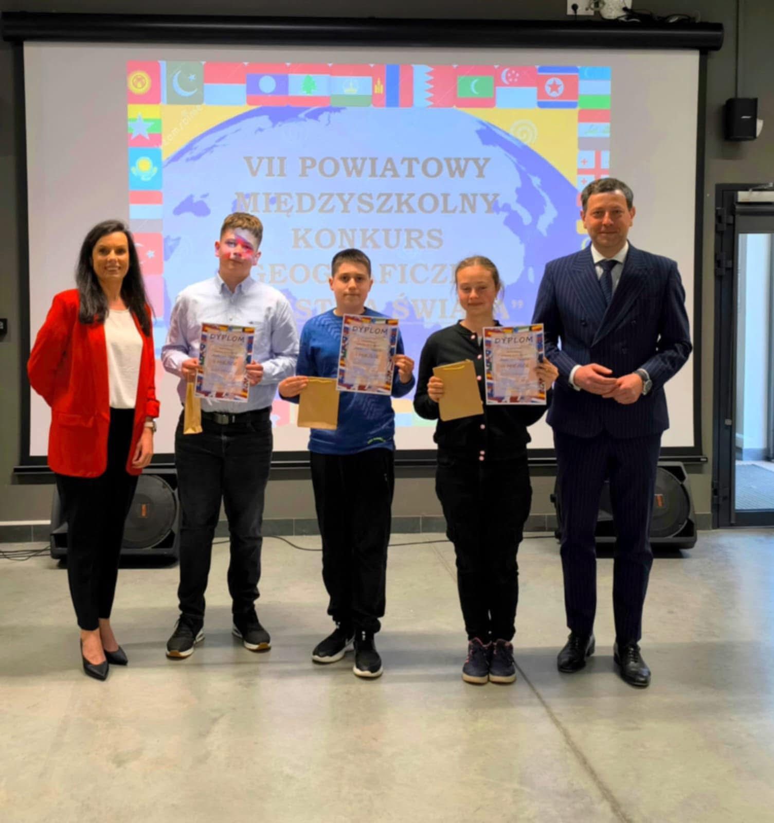 Nasz uczeń Hugo Krysiak zajął II miejsce w Powiatowym Międzyszkolnym Konkursie Geograficznym „ Państwa Świata”, który jest od siedmiu lat organizowany przez Szkołę Podstawową w Zdunach. Hugo zaimponował doskonałą znajomością flag, państw oraz ich stolic, wykazując się świetną orientacją na mapie świata. Tegoroczna edycja konkursu była wyjątkowo wymagająca, a rywalizacja niezwykle zacięta- tym bardziejcueszt tak wysoki wynik naszego ucznia i jego zasłużone miejsce na podium.