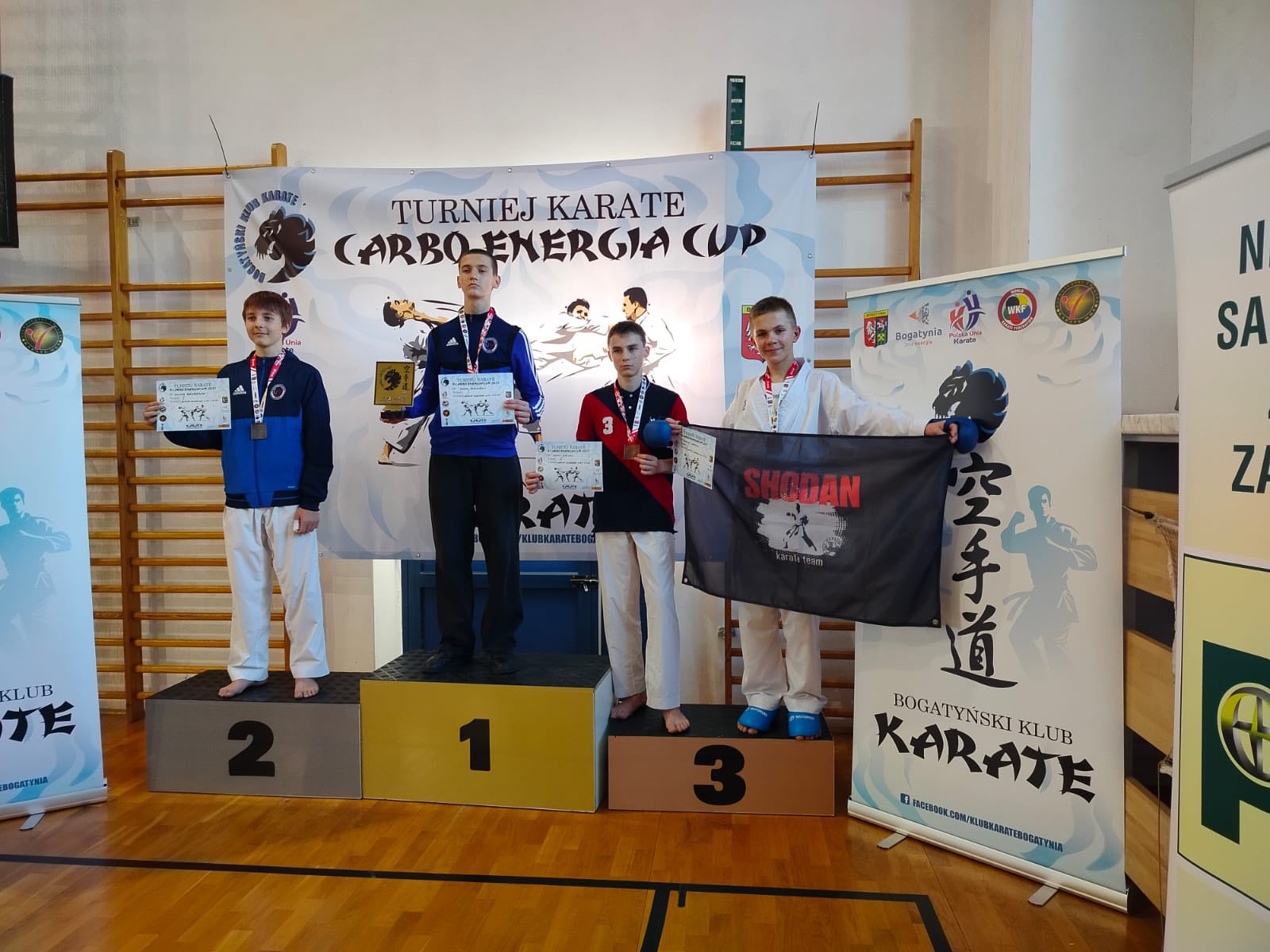 Nie wszyscy odpoczywali w mijający weekend. Nasze szkolne Shodaniaki w składzie: Mateusz Liberski, Bartosz Ptak, Wiktor Kandzierski ciężko walczyli podczas turnieju karate Carbo Energia w Bogatyni. Efekty ich ciężkiej pracy są zachwycające: Wiktor: kumite U10 +35- złoto, drużynowe U14- srebro, kata U10- brąz.