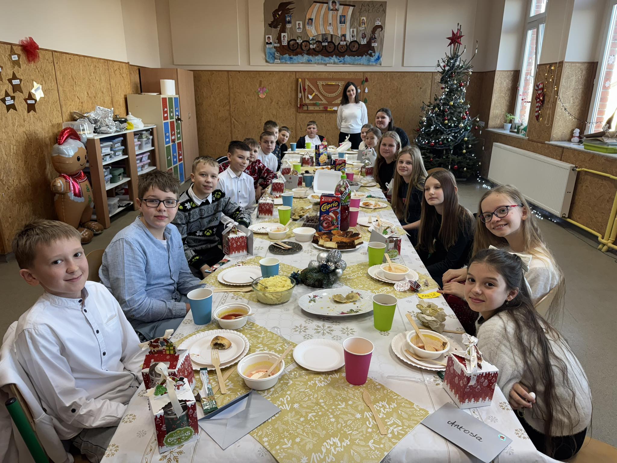19 grudnia tradycyjne stoły wigilijne zakończyły w naszej szkole czas oczekiwania na upragniony czas Świąt Bożego Narodzenia. Nauczyciele wraz z uczniami zasiedli do pięknie udekorowanych i bogato zastawionych stołów pełnych pachnących wigilijnych potraw i przekąsek. Nie zabrakło życzeń, łamania się opłatkiem, śpiewania kolęd i wyczekiwanych prezentów. Zdrowych i spokojnych świąt dla wszystkich członków naszej społeczności!