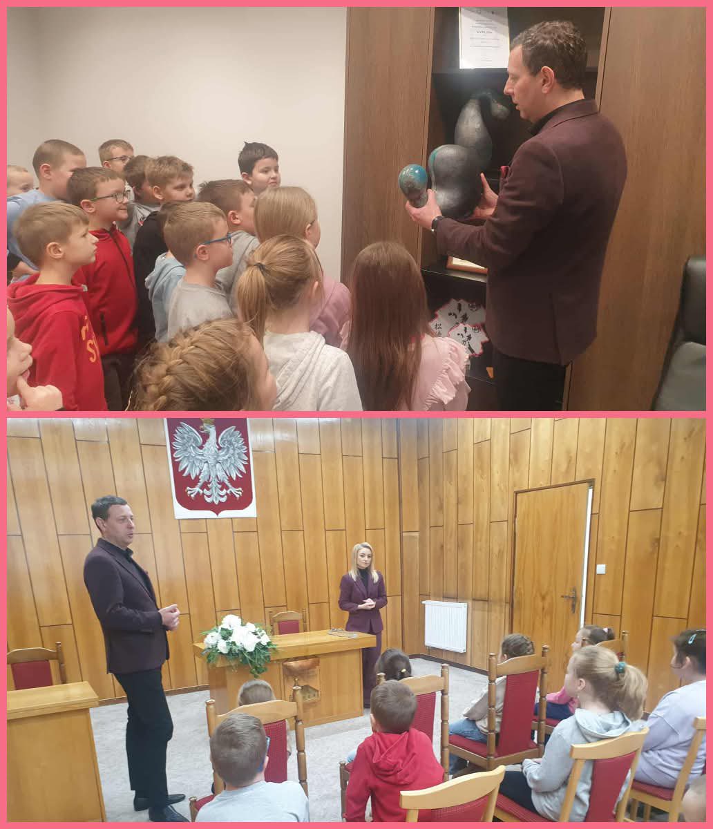 * ?Wizyta w Urzędzie Miejskim ? Uczniowie mieli okazję spotkać się z Panem Burmistrzem oraz pracownikami Urzędu, poznając tajniki pracy samorządu.