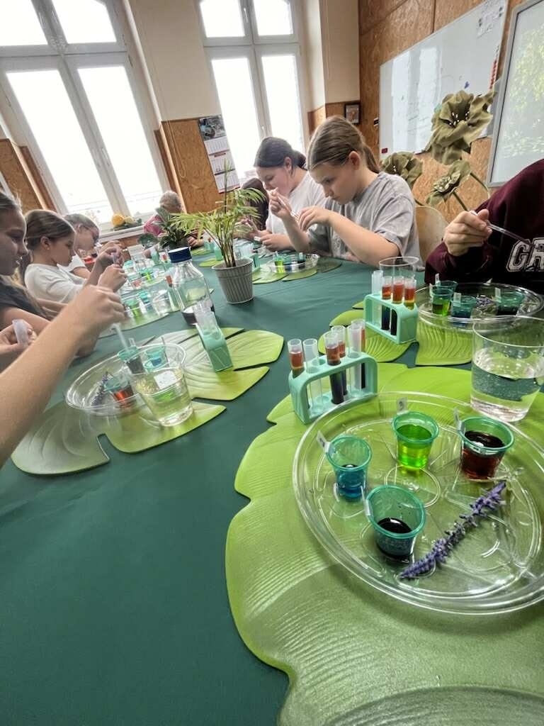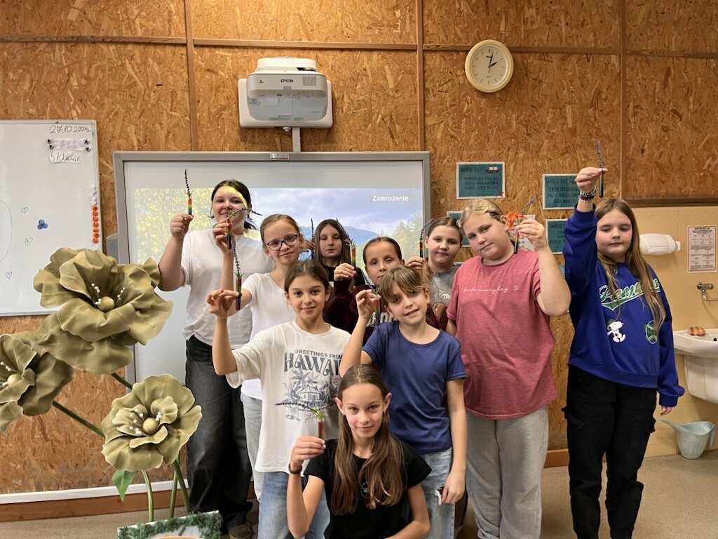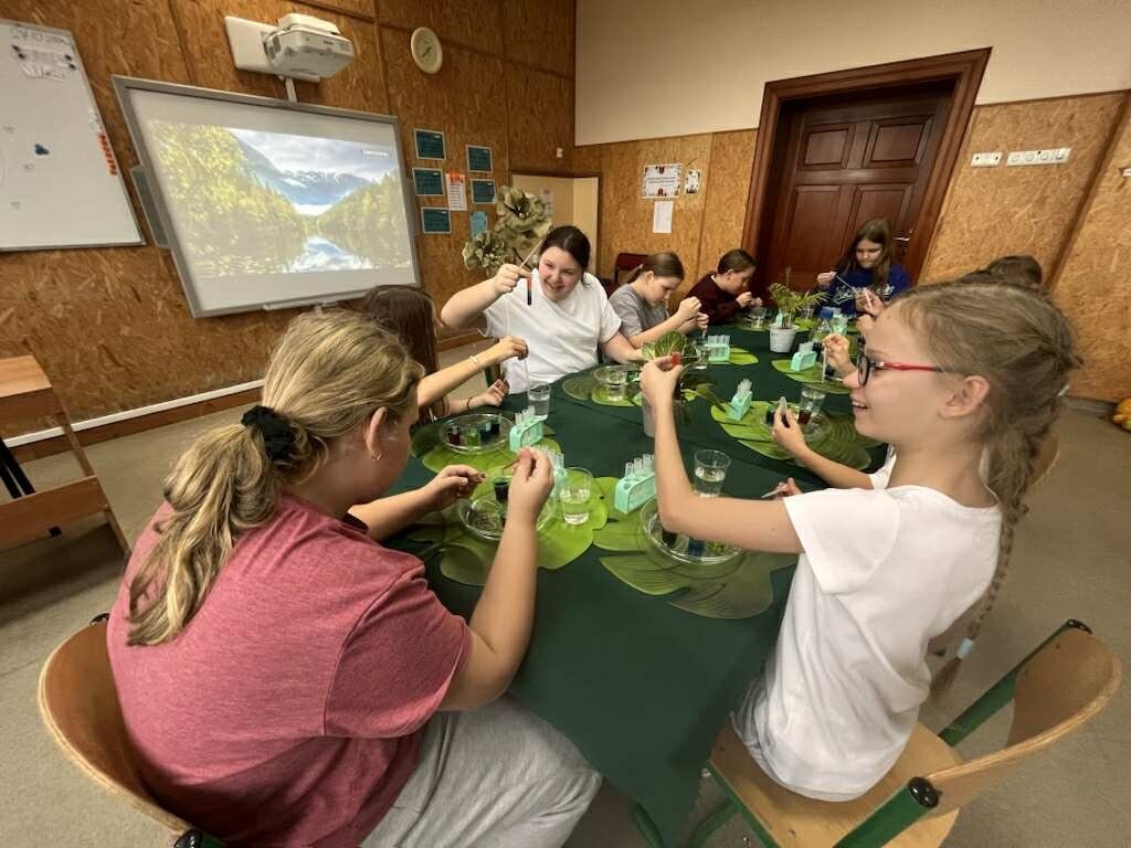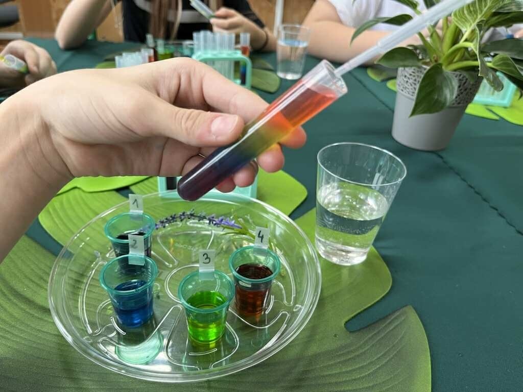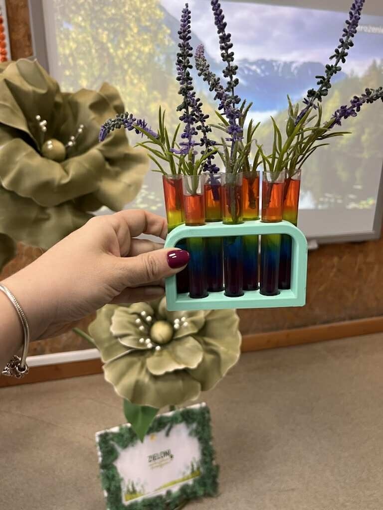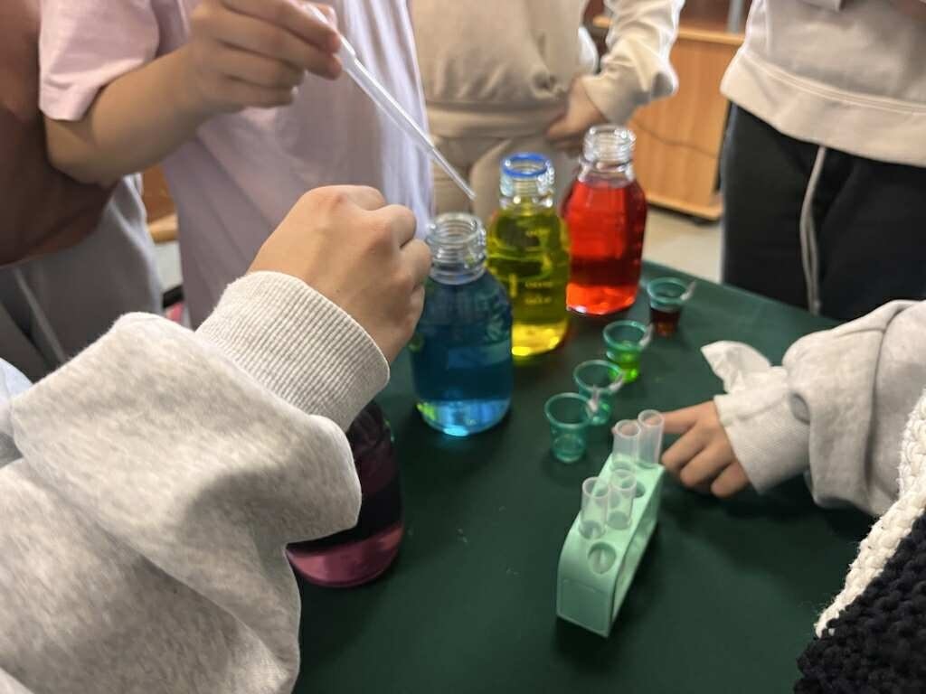 DziÅ› na naszym kóÅ‚ku tworzyliÅ›my „tÄ™czÄ™ w probówce”. MieszajÄ…c starannie przygotowane roztwory o różnych stężeniach i barwach, obserwowaliÅ›my, jak powstajÄ… poÅ›rednie odcienie. To nie tylko chemia, lecz także odrobina fizycznej magii kolorów. Przy relaksujÄ…cej muzyce powstaÅ‚y piÄ™kne, wielobarwne warstwy – idealny sposób na rozjaÅ›nienie jesiennej szarugi. U nas zawsze zielono i kreatywnie, niezależnie od pogody! ??